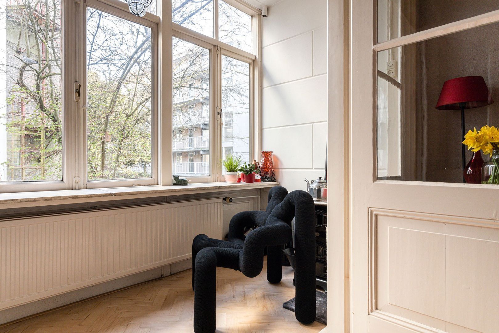 Uiterst charmant oogcontact vanuit het huis met de singel zelf en met de aan de overzijde gelegen, belegen en klassieke panden. Diverse eigenaren (en bovenburen) hebben het pand liefdevol behouden en de meest recente stilering en modernisering loopt aardig in de pas met wat vandaag de dag gewenst is…..