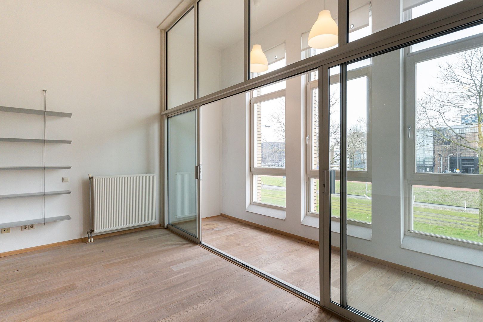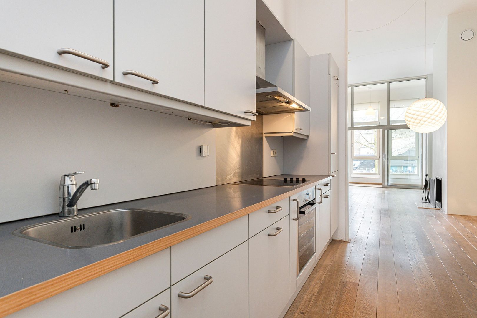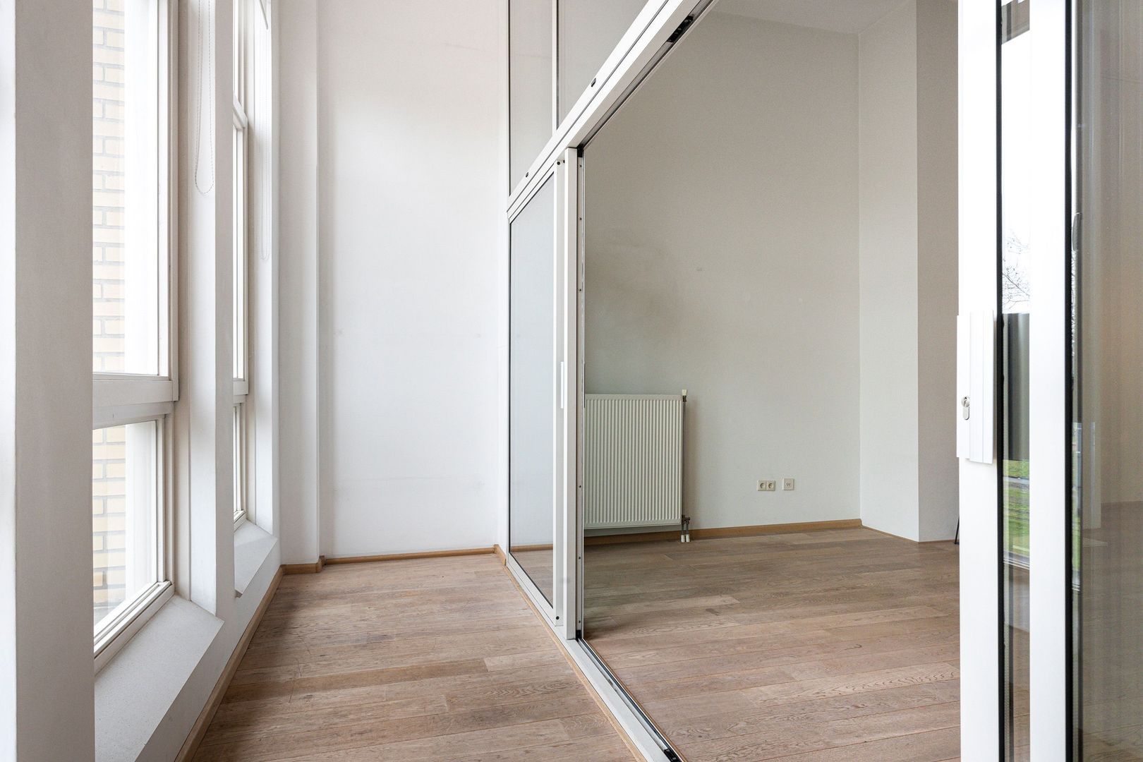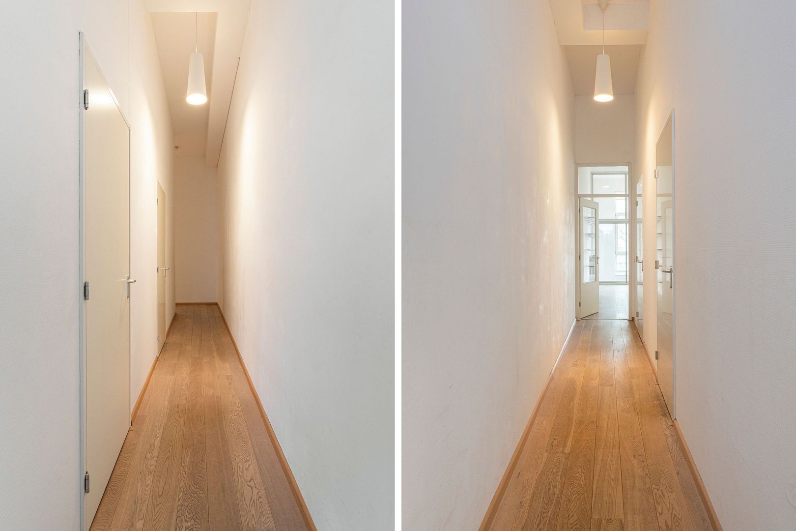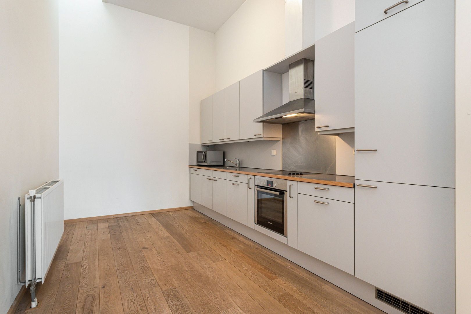 De hoge plafonds doen dit appartement nog ruimer lijken en door de grote raampartijen de lichtkoepels is het heerlijk licht binnen.