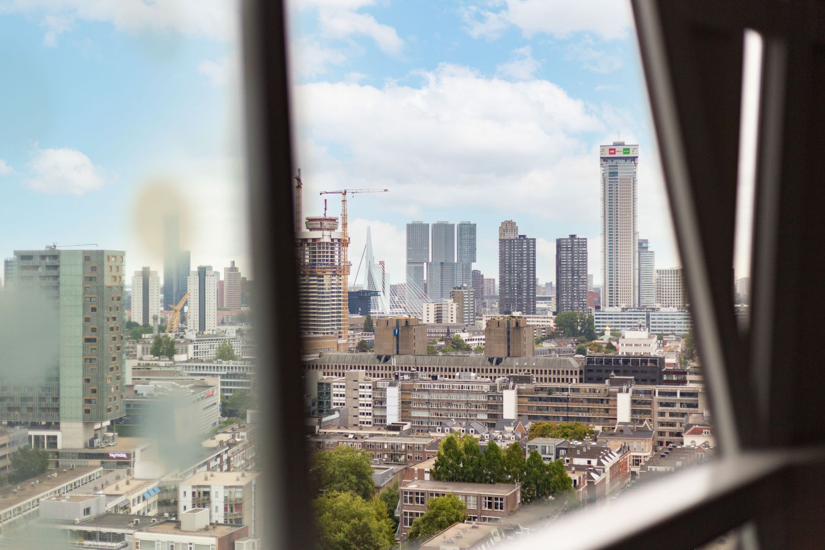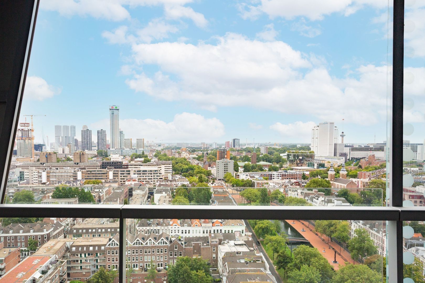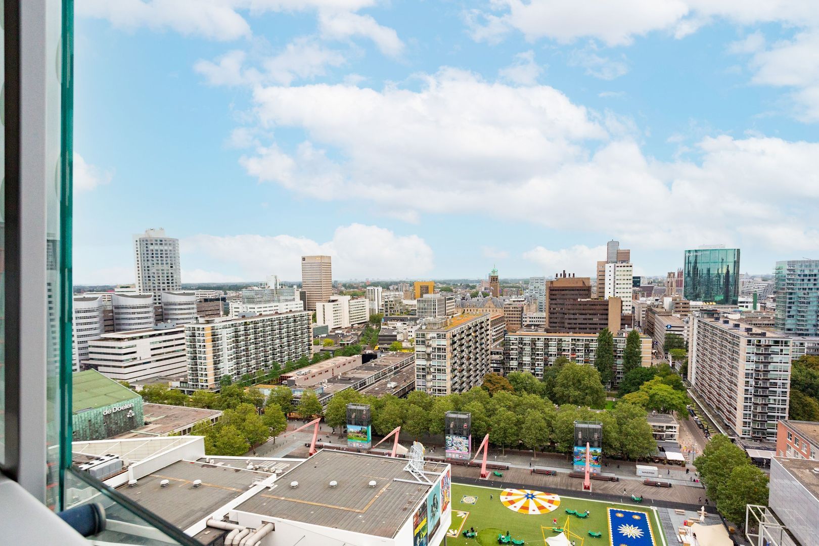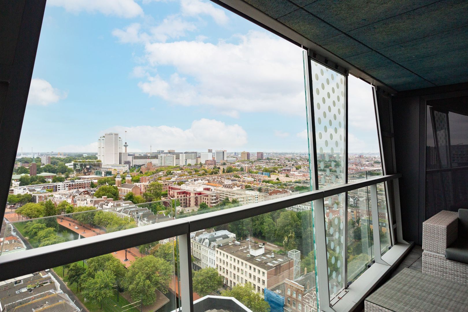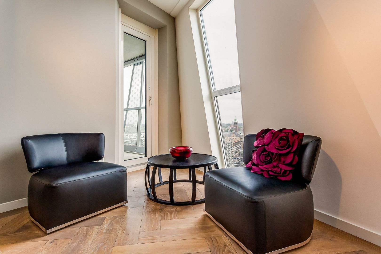 In het hart van het Central District (www.rotterdam-centraldistrict.nl) en op de 20e verdieping van De Calypso gelegen, bijzonder groot (ca. 200m2) en uitermate comfortabel 3/4 - KAMER APPARTEMENT met 2 grote TERRASEN (ca. 35m2!) en een eigen PARKEERPLAATS in de parkeergarage.
