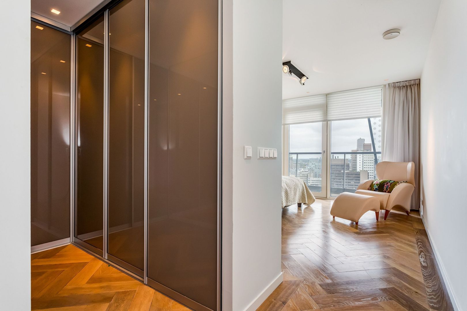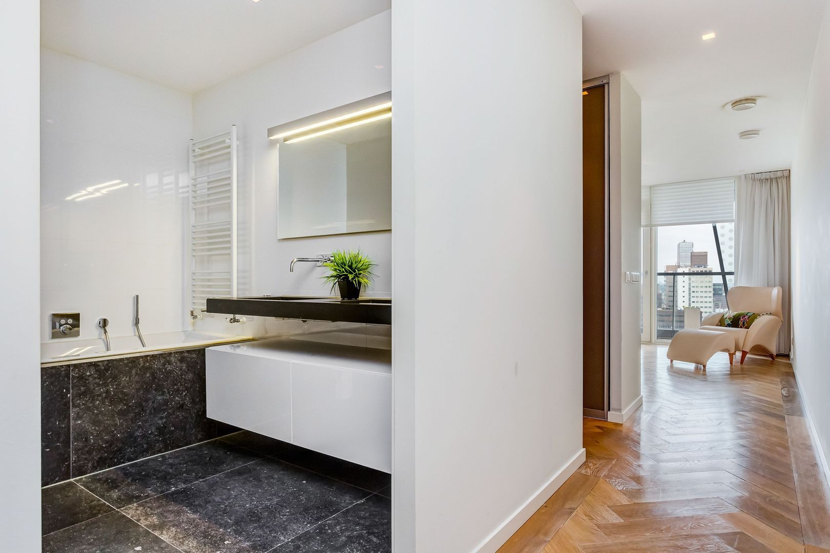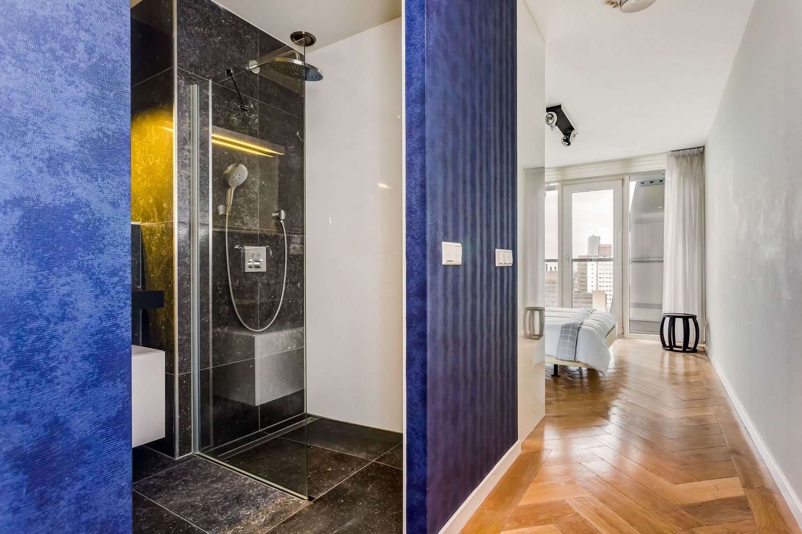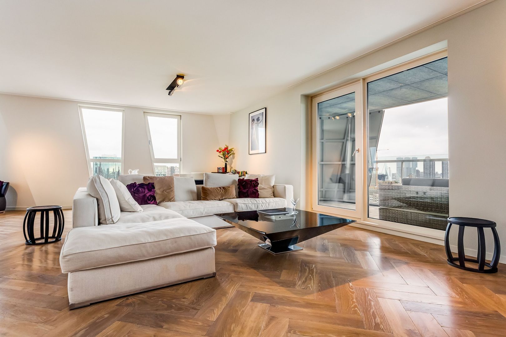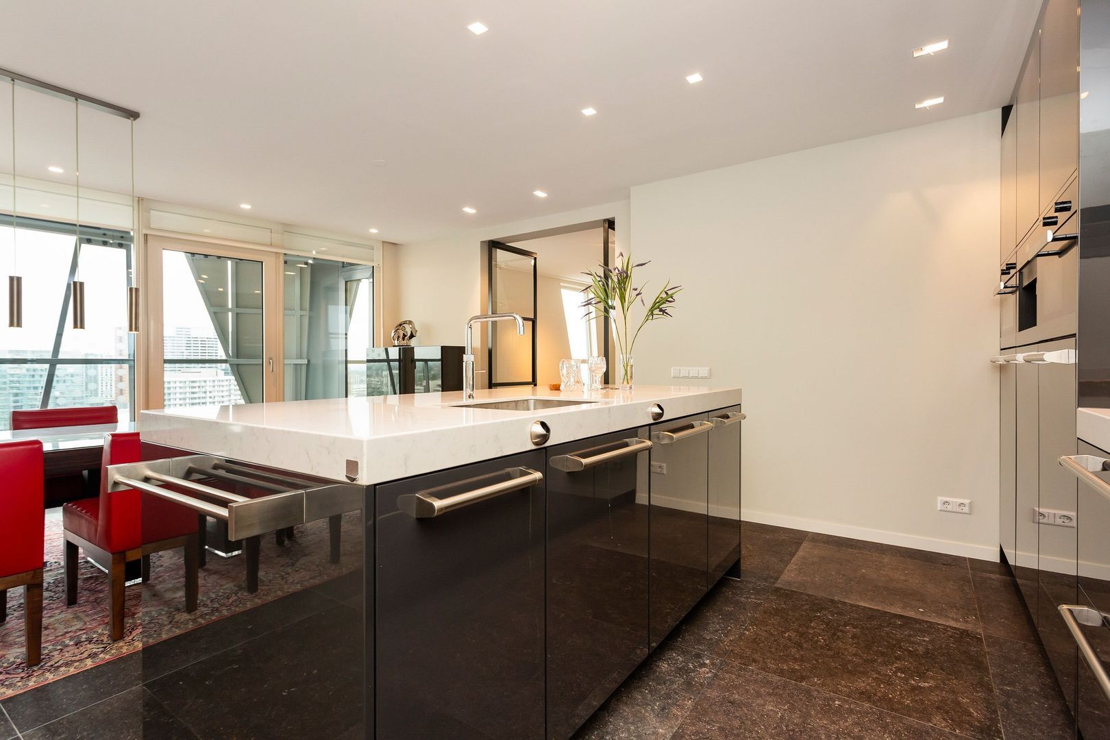 In het hart van het Central District (www.rotterdam-centraldistrict.nl) en op de 20e verdieping van De Calypso gelegen, bijzonder groot (ca. 200m2) en uitermate comfortabel 3/4 - KAMER APPARTEMENT met 2 grote TERRASEN (ca. 35m2!) en een eigen PARKEERPLAATS in de parkeergarage.