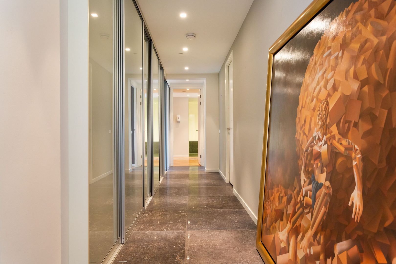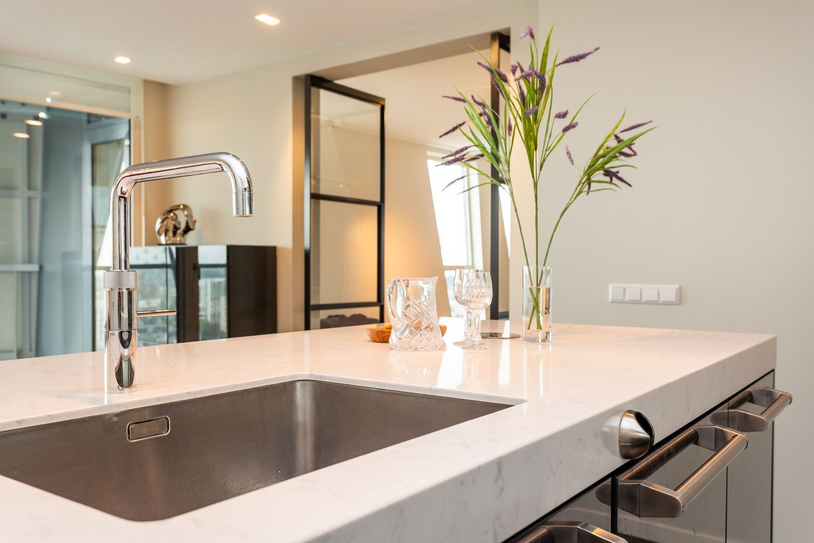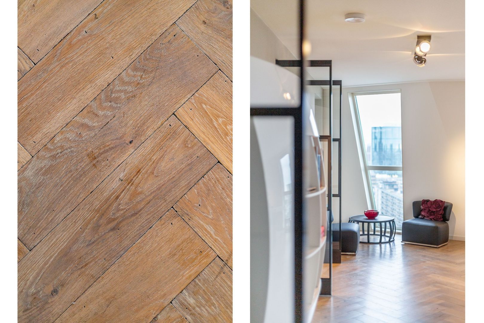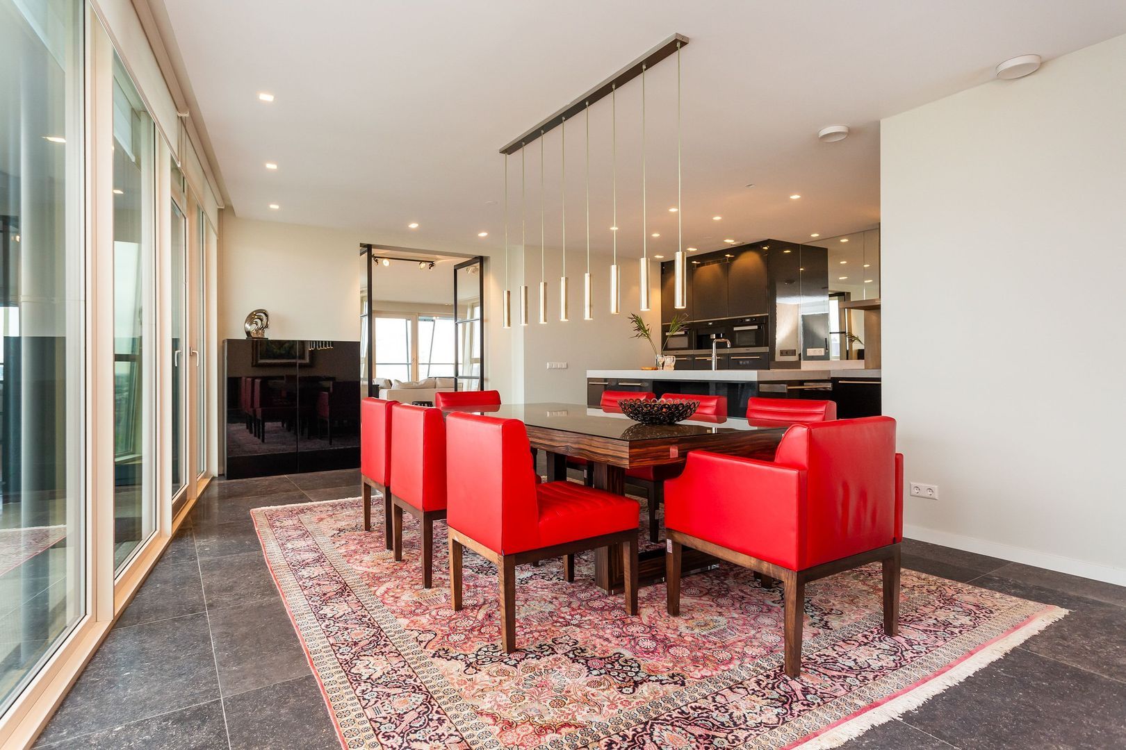 Het appartement heeft een rustige en heel functionele indeling en beschikt over een uitermate luxe (o.a. houten en natuurstenen vloeren…) en smaakvol interieur en een adembenemend zicht over de meeste landmarks van Rotterdam, door haar ongeveer 30 meter lange en open buitengevel.