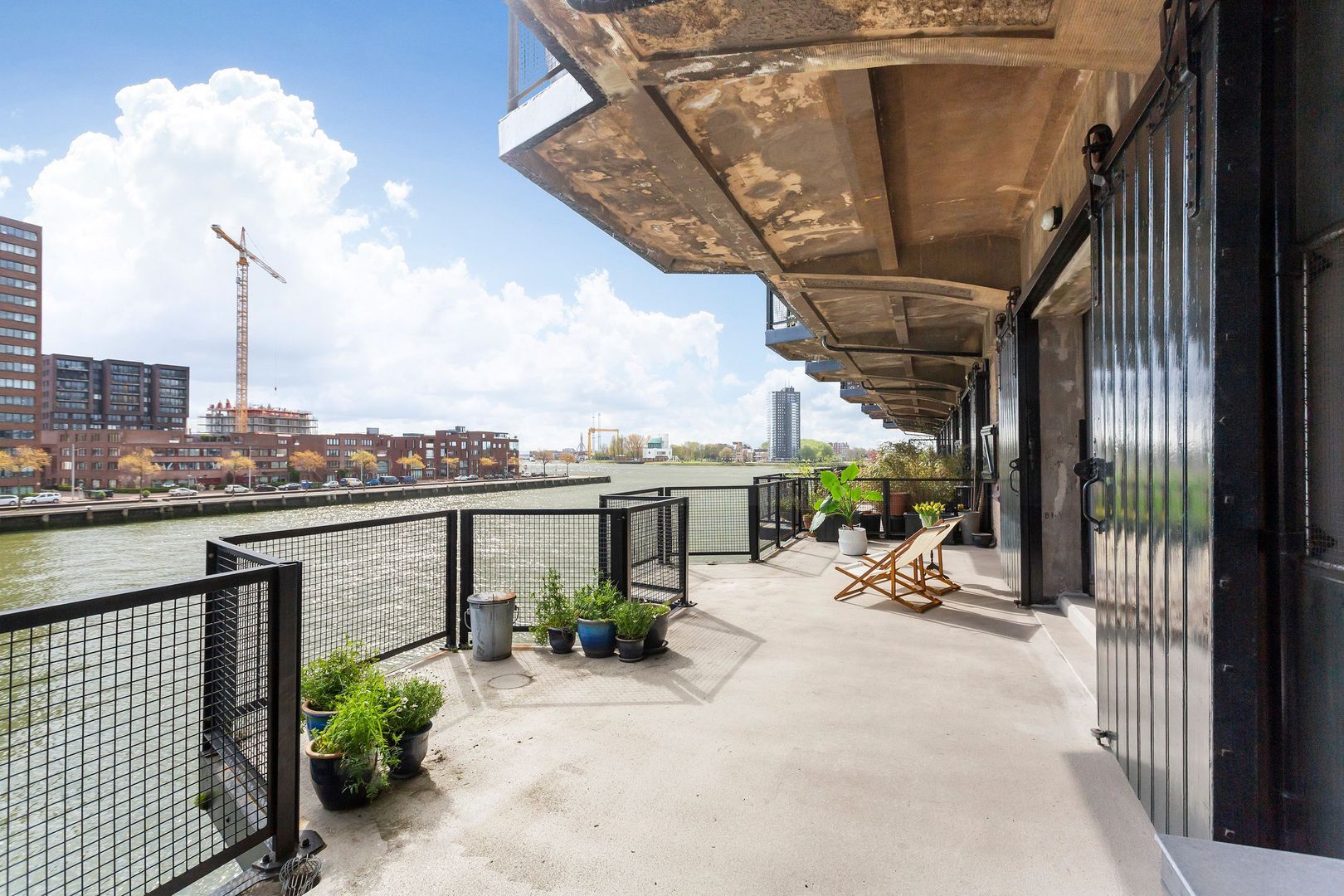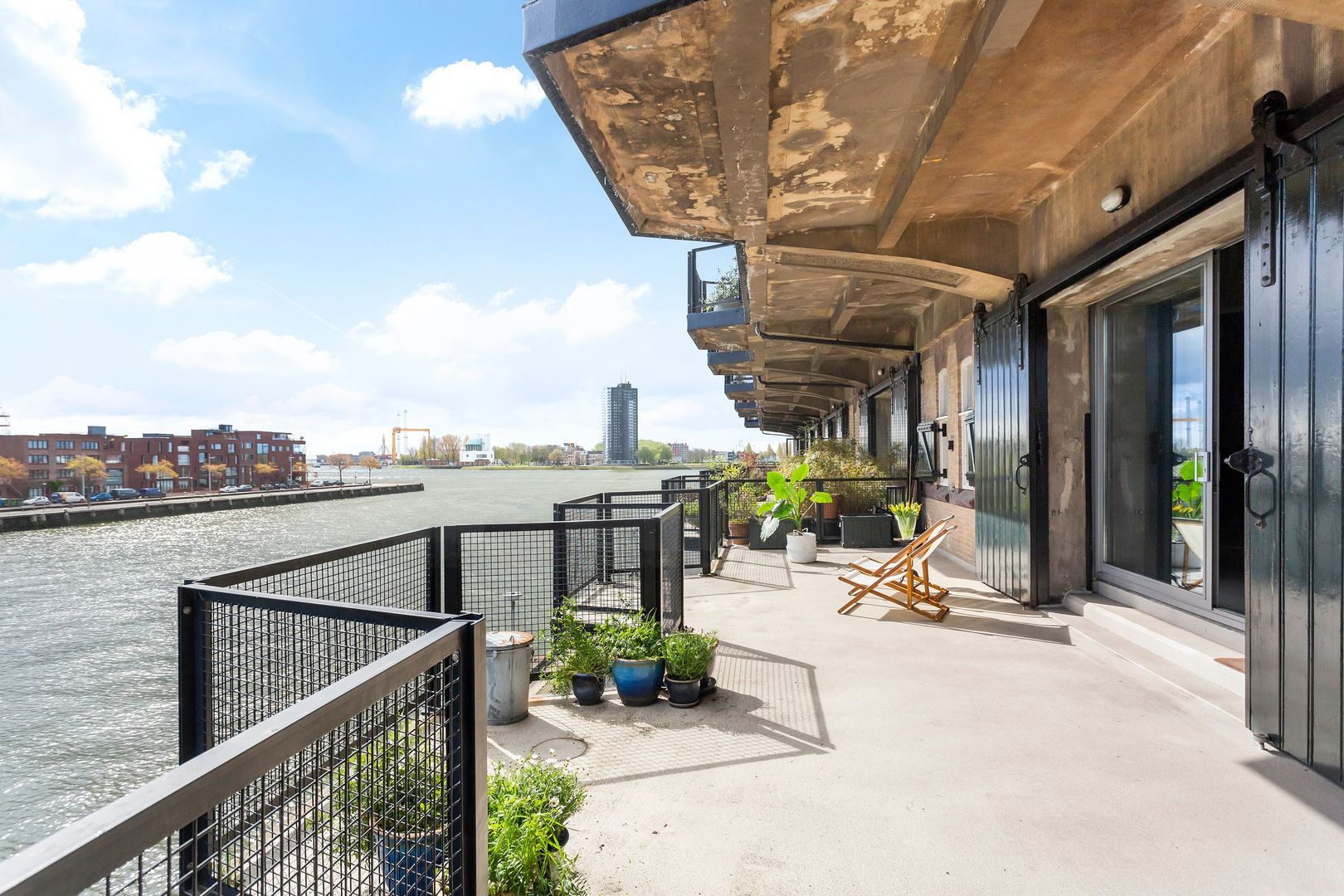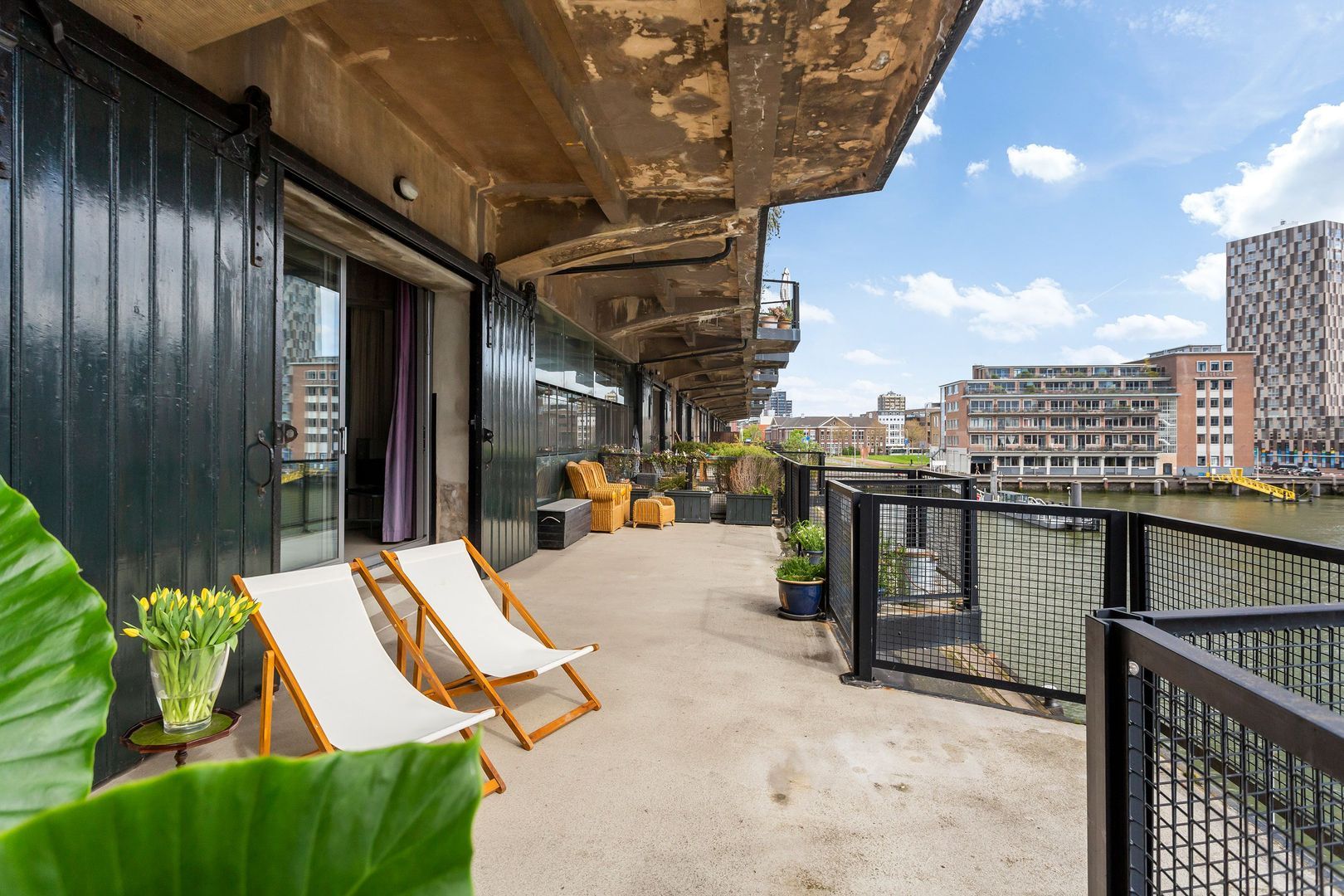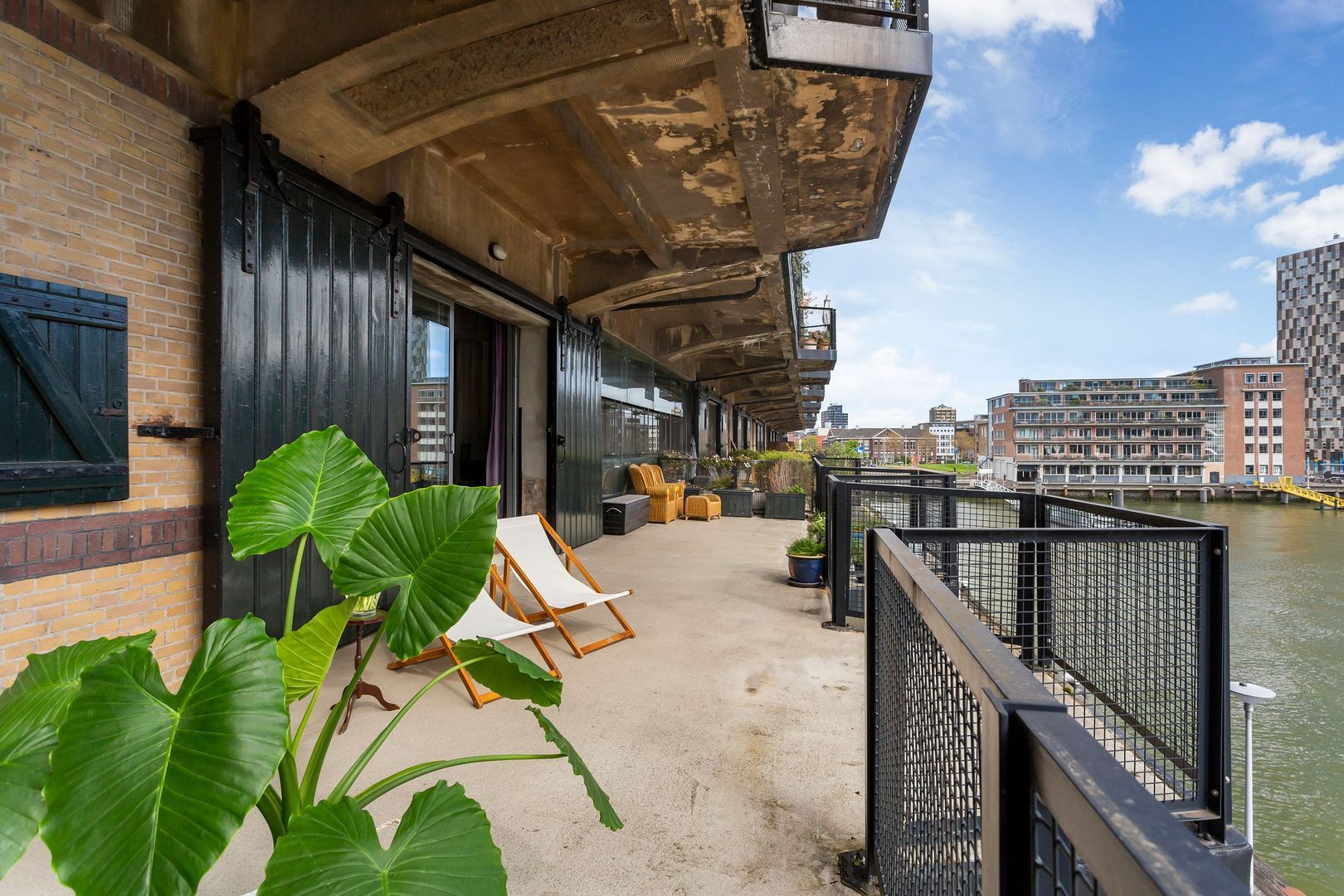 Indrukwekkend krachtig LOFT – APPARTEMENT, (Rijksmonument van ca. 123m²) aan de waterkant van de Sint-Jobshaven, met een groots TERRAS van ca. 55m² en een plafondhoogte van wel 3,5 meter!