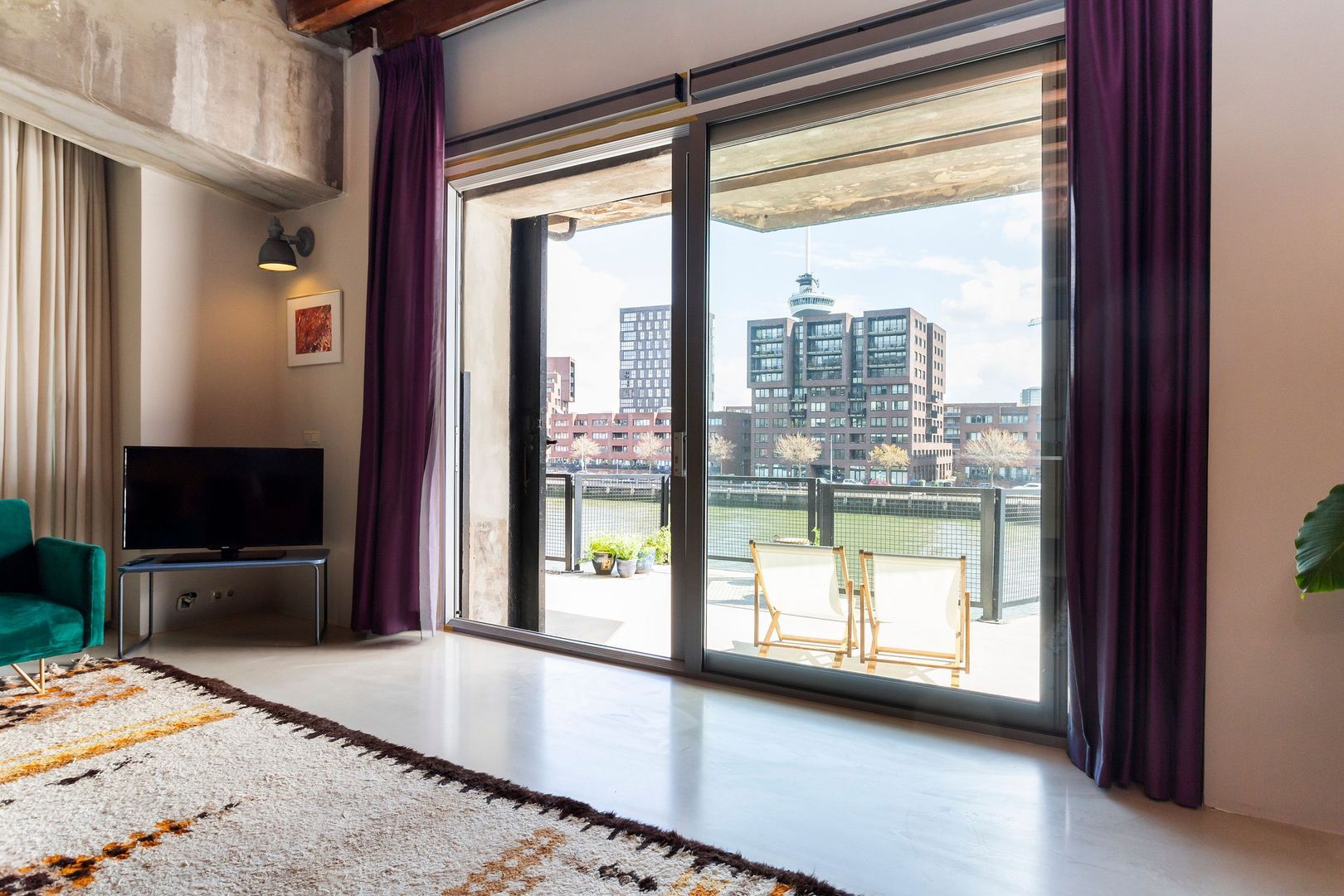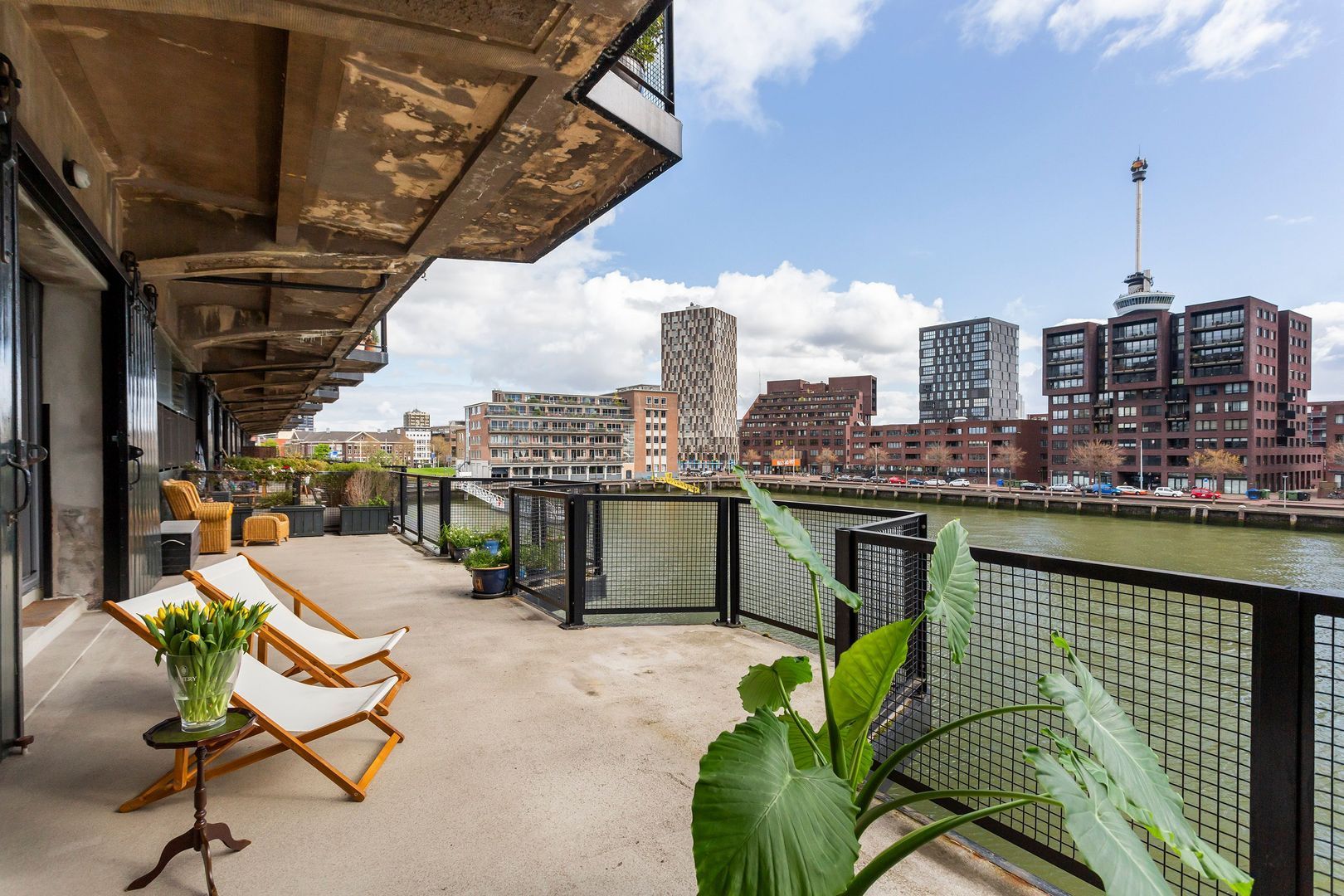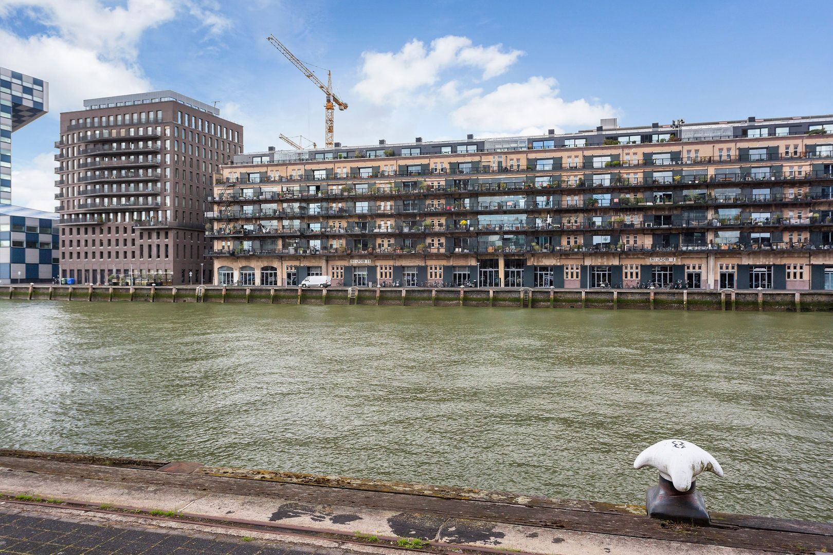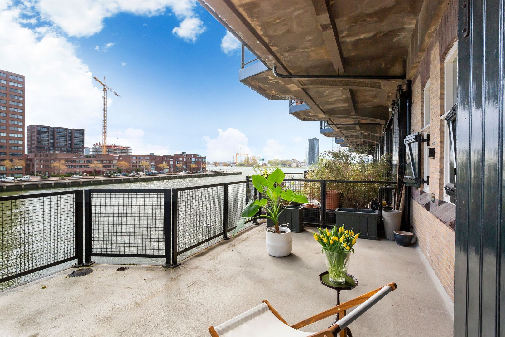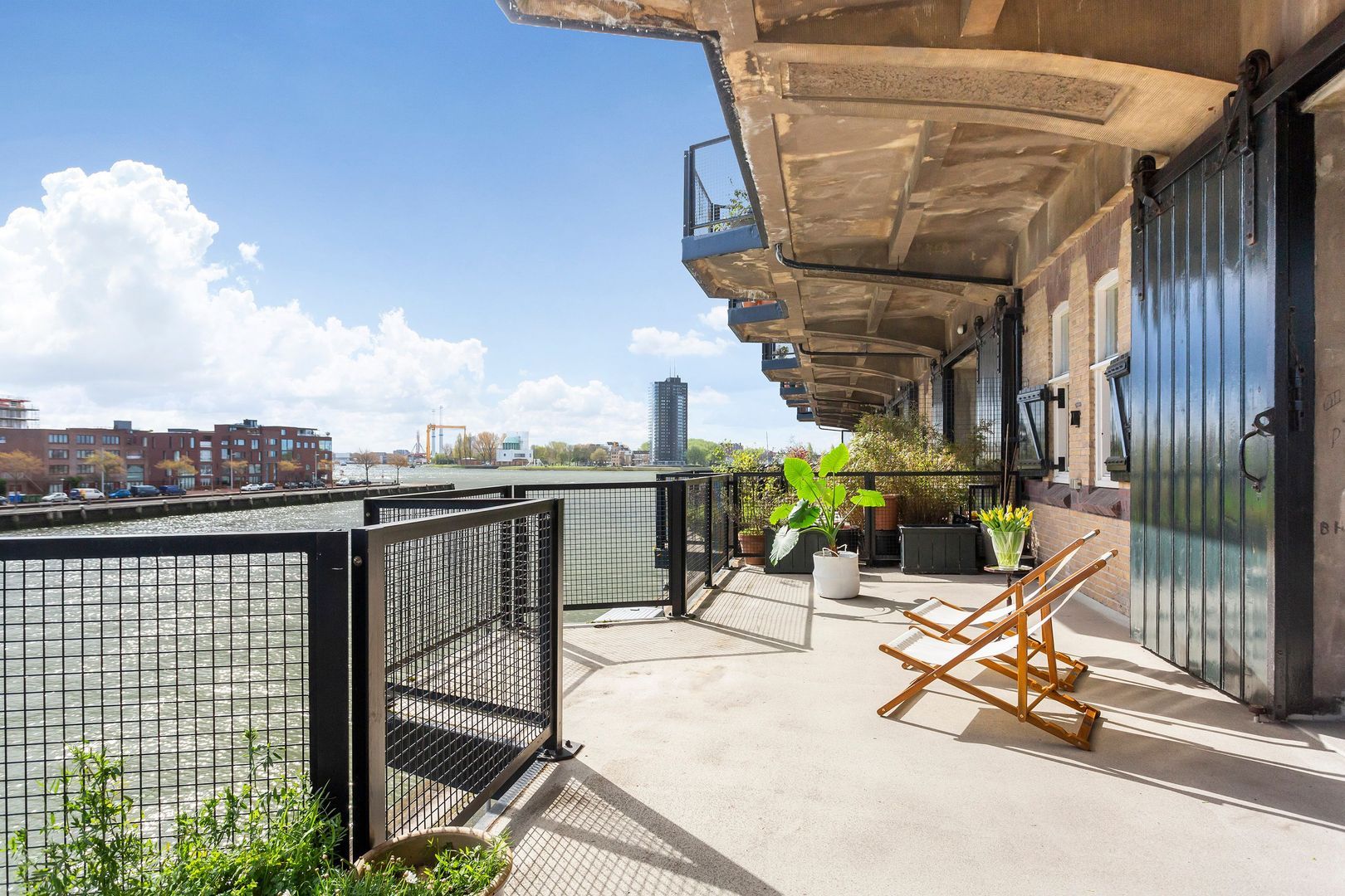 Indrukwekkend krachtig LOFT – APPARTEMENT, (Rijksmonument van ca. 123m²) aan de waterkant van de Sint-Jobshaven, met een groots TERRAS van ca. 55m² en een plafondhoogte van wel 3,5 meter!