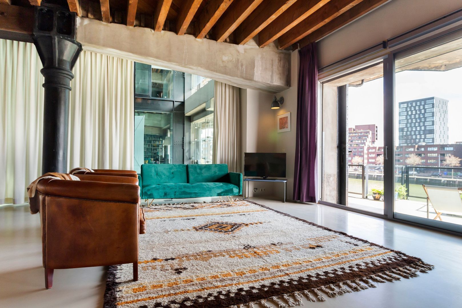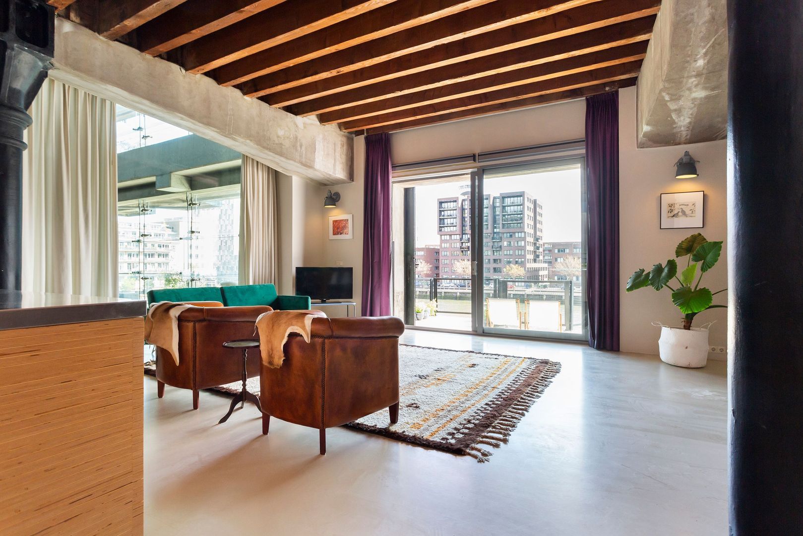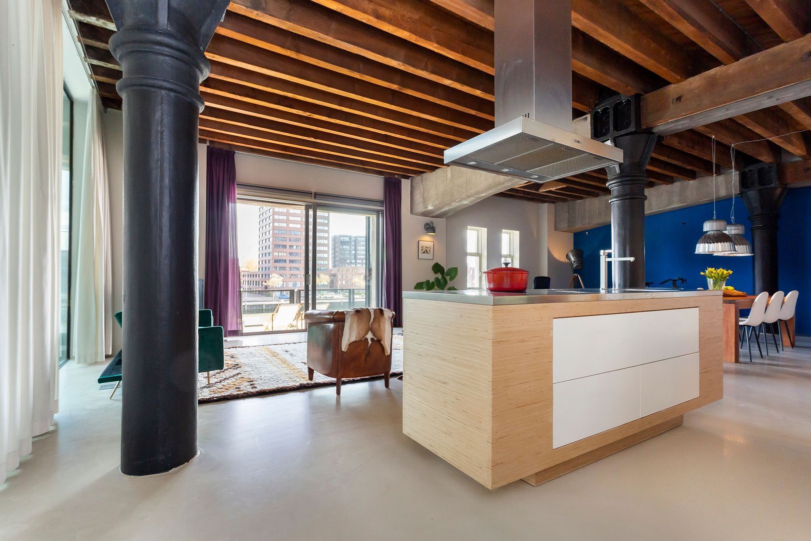 Mooi originele elementen van weleer, zoals dikke gietijzeren kolommen, formidabele houten balken(plafond) en zware authentieke luiken zorgen voor hèt ultieme Rotterdamgevoel. Daarnaast is alle luxe in het appartement aanwezig, van een goed geoutilleerde keuken tot een luxe badkamer. Bovendien is het geheel voorzien van vloerverwarming. En… zeer bijzonder gelegen naast een atrium met een volledig glazen wand wat zorgt voor nog meer licht en een veel ruimtelijker gevoel.