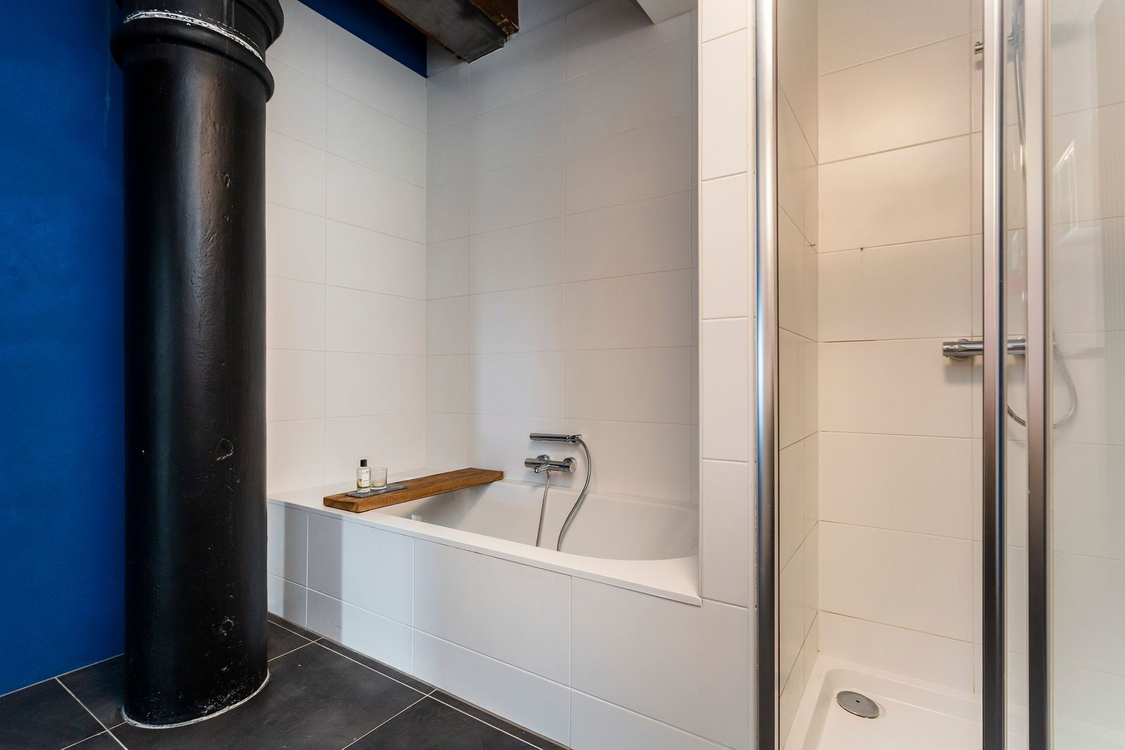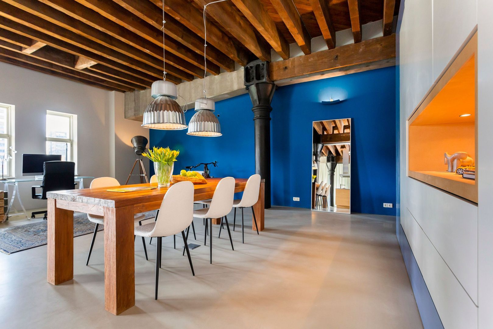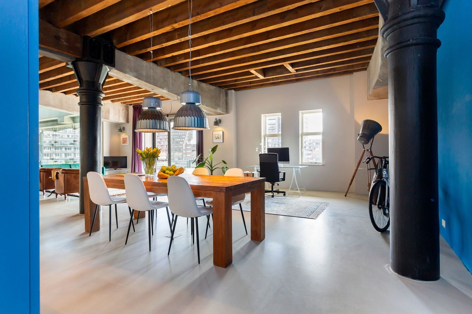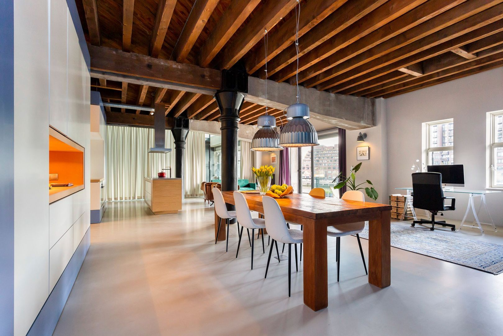 Mooi originele elementen van weleer, zoals dikke gietijzeren kolommen, formidabele houten balken(plafond) en zware authentieke luiken zorgen voor hèt ultieme Rotterdamgevoel. Daarnaast is alle luxe in het appartement aanwezig, van een goed geoutilleerde keuken tot een luxe badkamer. Bovendien is het geheel voorzien van vloerverwarming. En… zeer bijzonder gelegen naast een atrium met een volledig glazen wand wat zorgt voor nog meer licht en een veel ruimtelijker gevoel.
