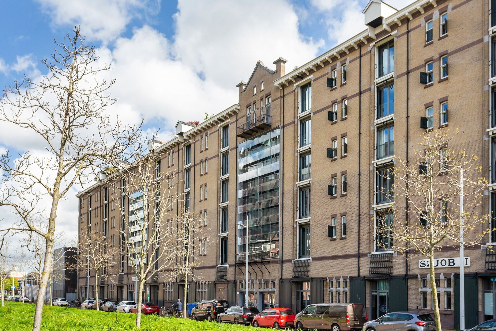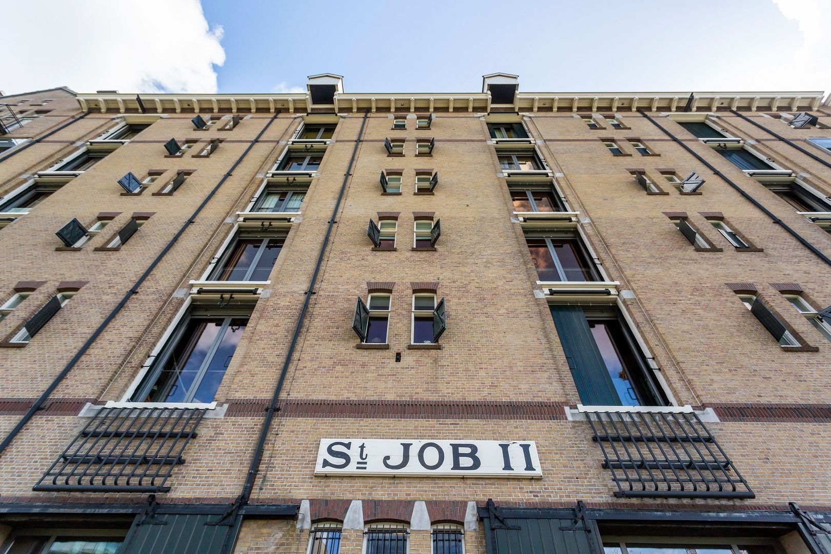Het appartement is gelegen op de 1e verdieping van het (voormalige) St. Jobsveem, een markant, robuust en zeer stoer silo-opslag-complex uit 1914, dat in 2007 volledig getransformeerd werd tot verfijnde woon- en werkruimten.