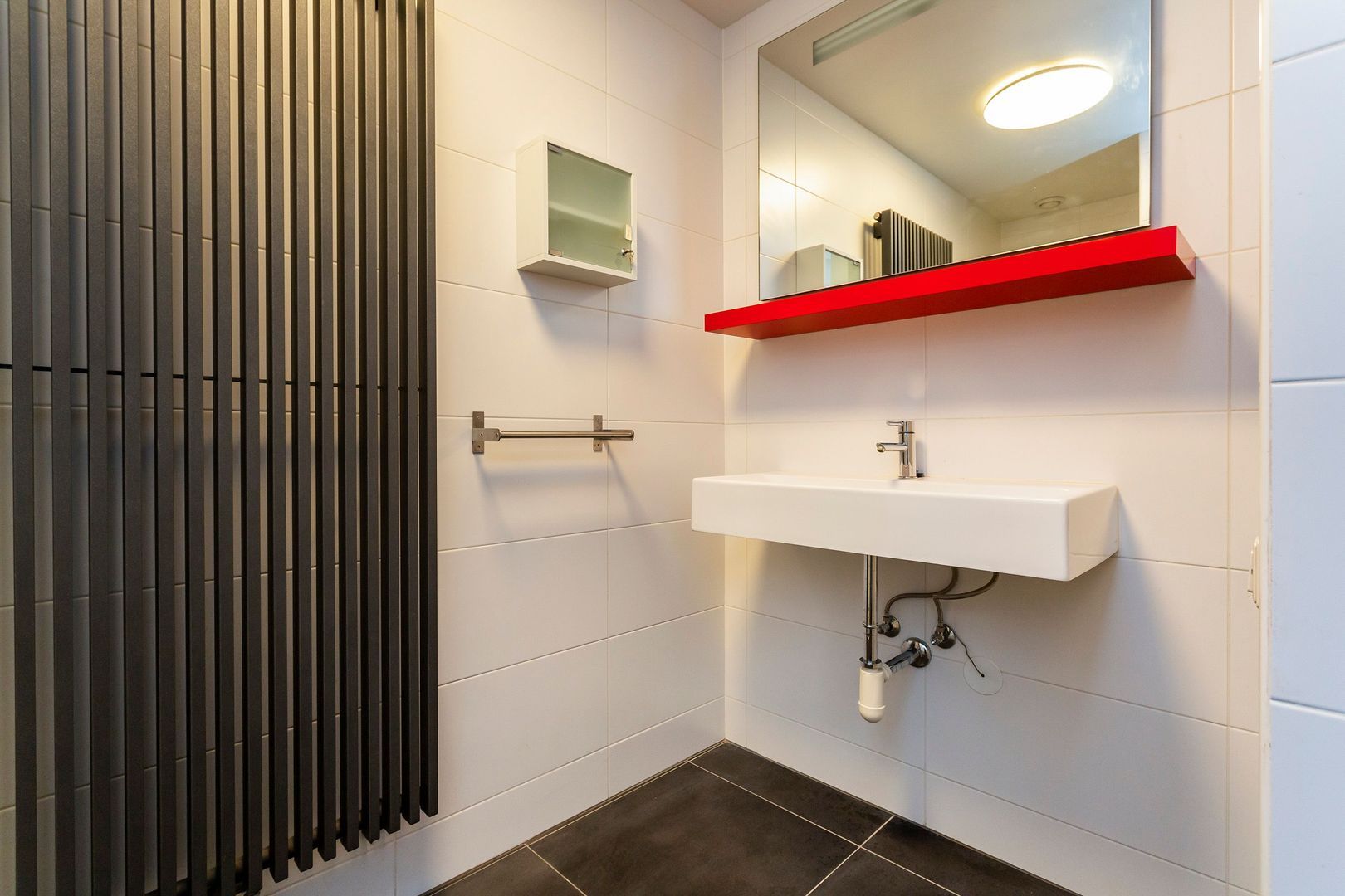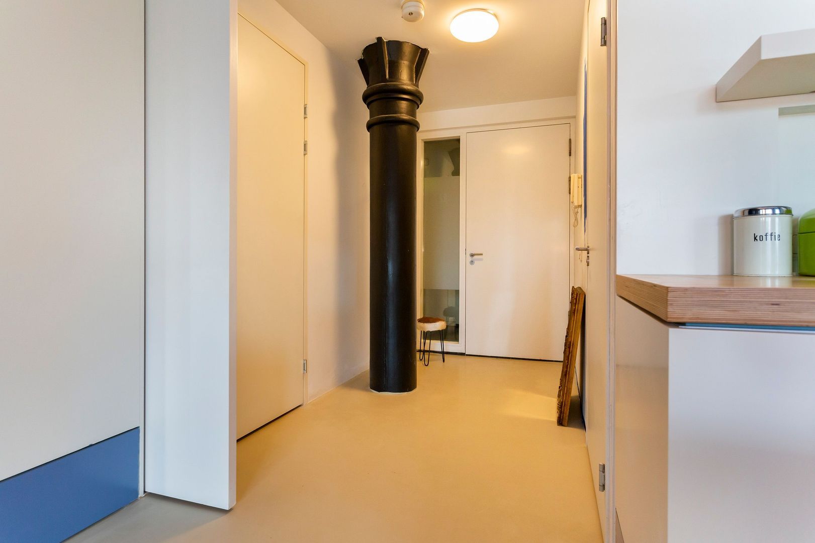 Via een van de centrale hallen van het St. Jobsveem en daarna met de trap of lift bereik je de 1e verdieping. Het appartement ligt aan het atrium, waardoor er heel veel (extra) daglicht naar binnenkomt. De open ruimte is enorm(!), want ca. 87m² en