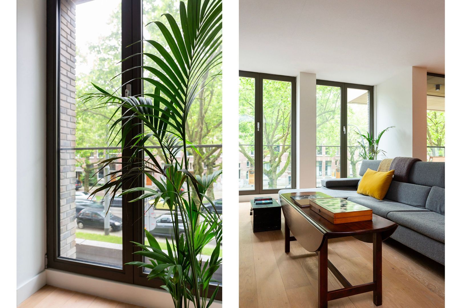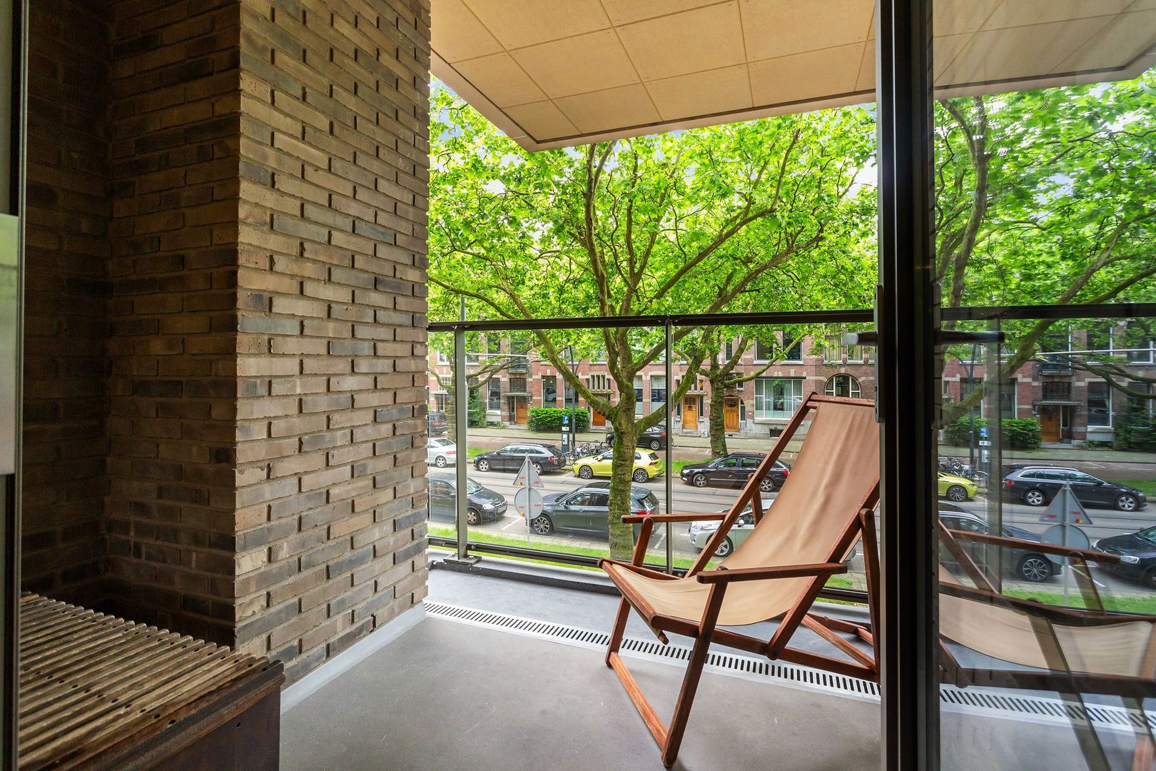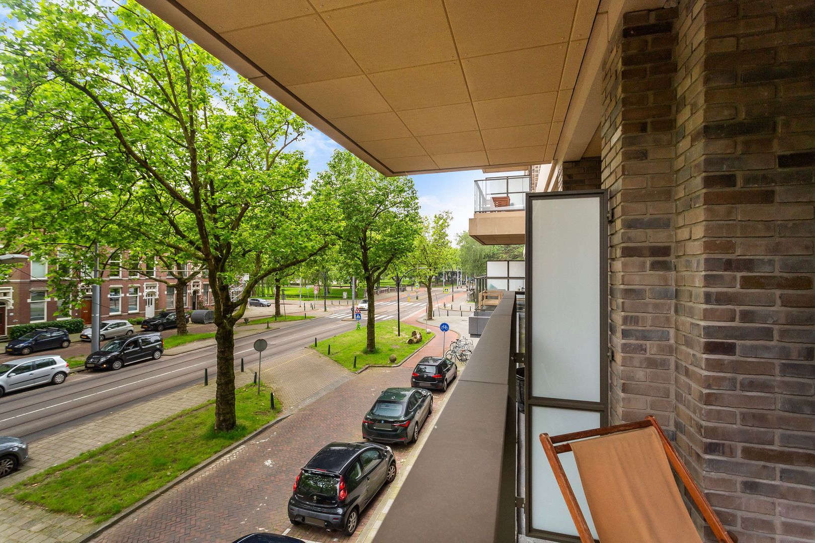 balkon op het zuiden, met een fijn vrij uitzicht over de Mathenesserlaan.