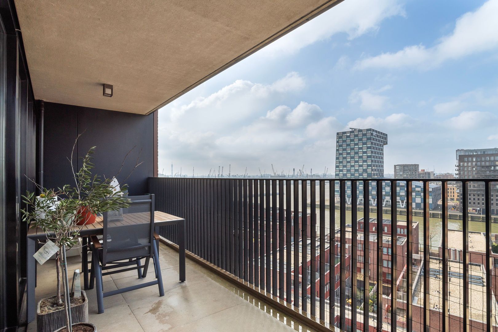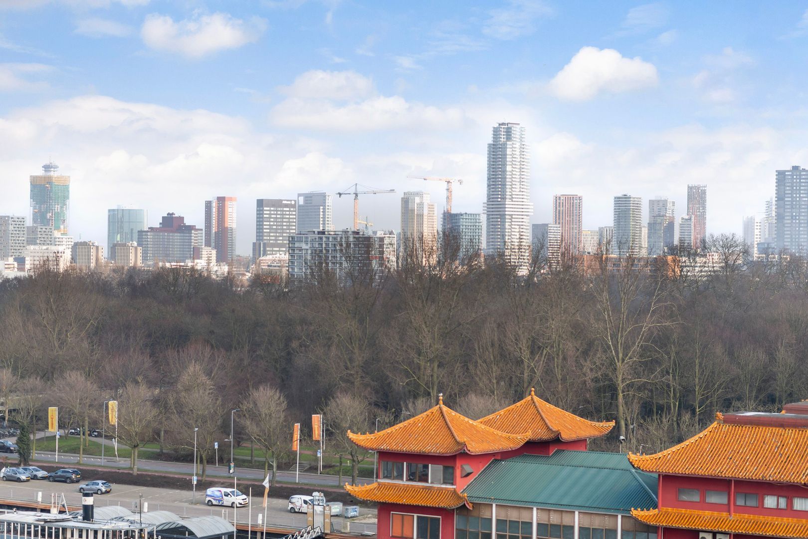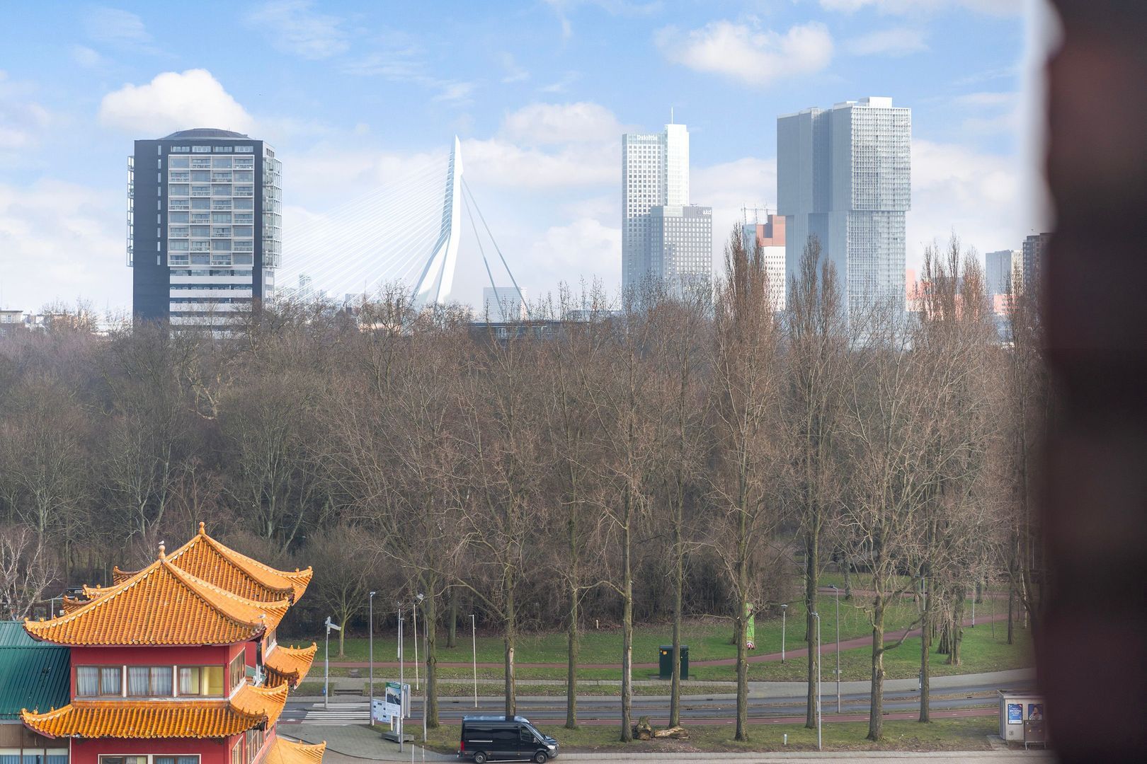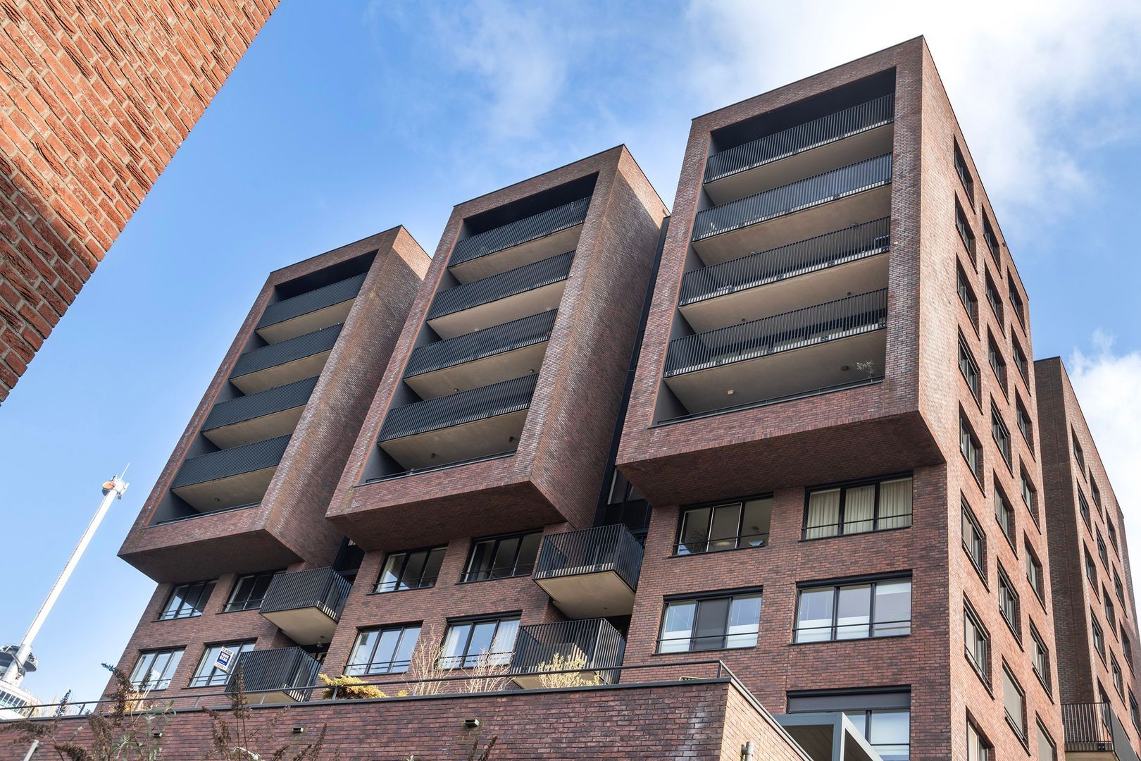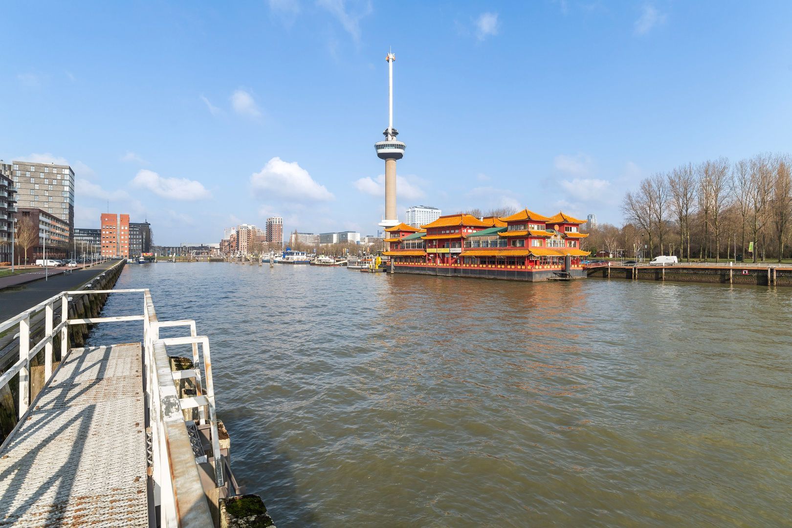 Spectaculair en ruimtelijk 5 – KAMER HOEKAPPARTEMENT (gelijkvloers; ca. 150m²) omringd door het water van de Parkhaven, de Sint Jobshaven en de Nieuwe Maas met haar boeiende scheepsbewegingen en altijd een frisse bries! Vanaf de 8e verdieping zijn de rivier, de Euromast en de skyline van de stad tastbaar (en geluidloos) aanwezig. Echt overal is van het prachtige en ‘bewegelijke’ uitzicht te genieten! Uniek stedelijk wonen (juist óók voor gezinnen) op topniveau.