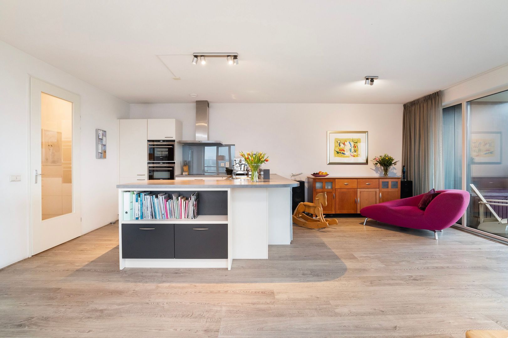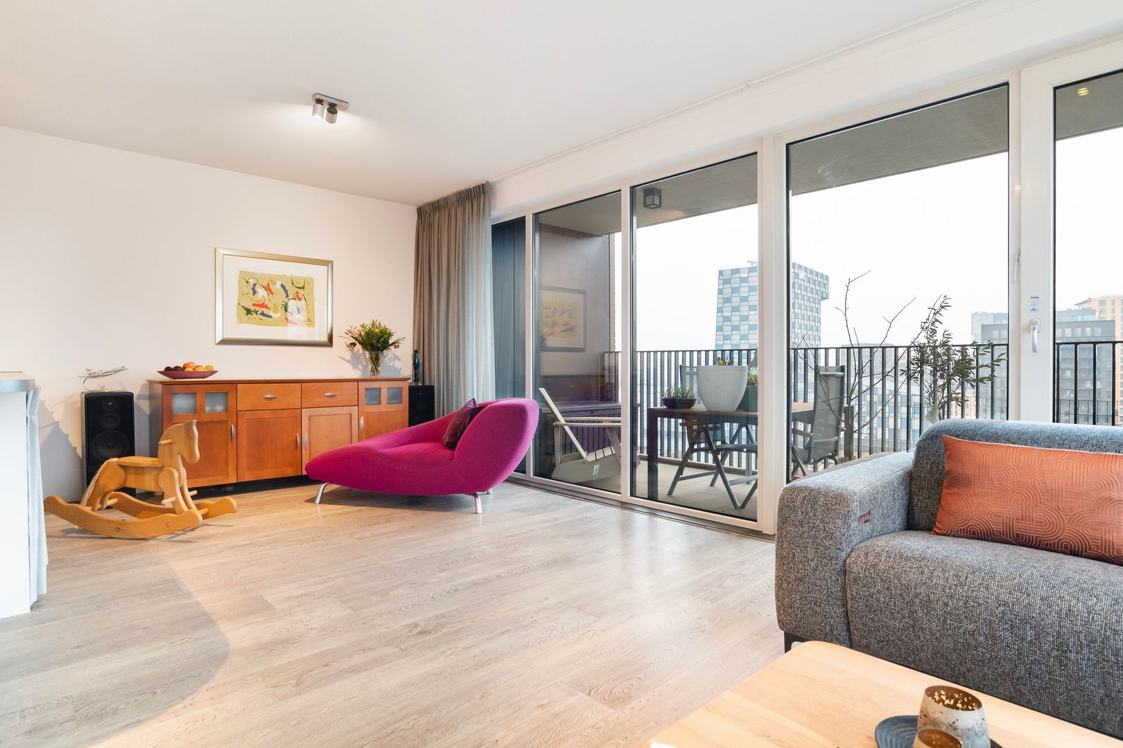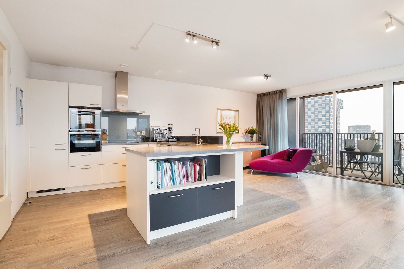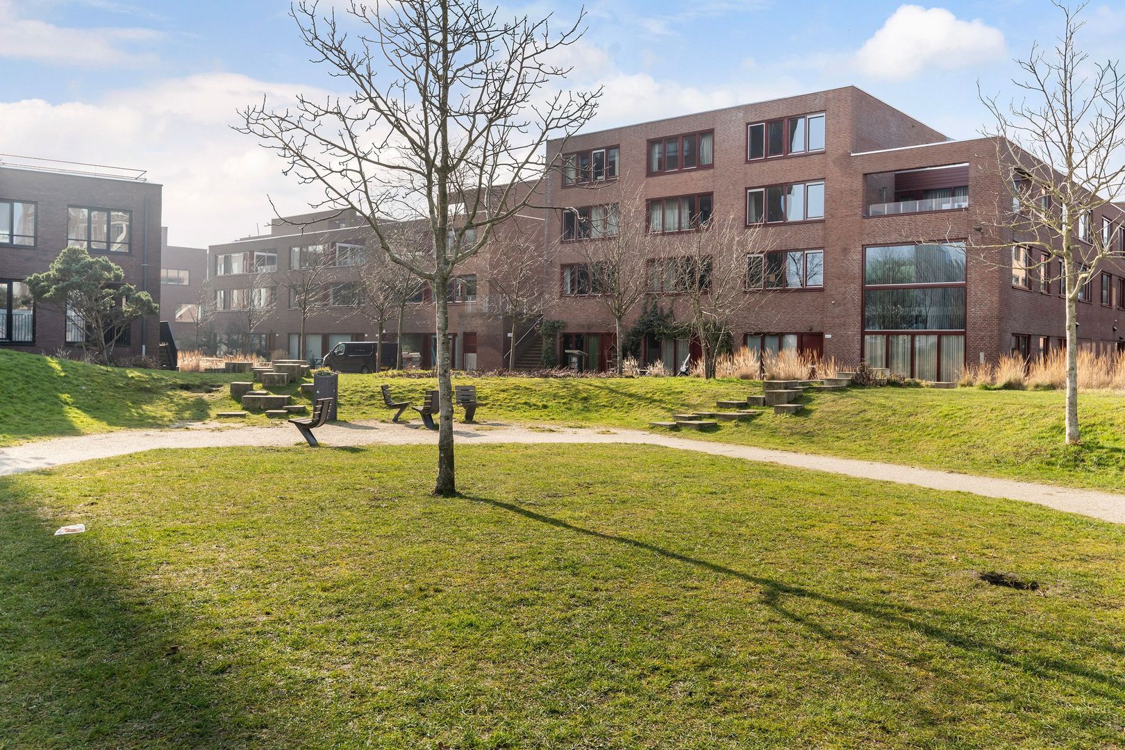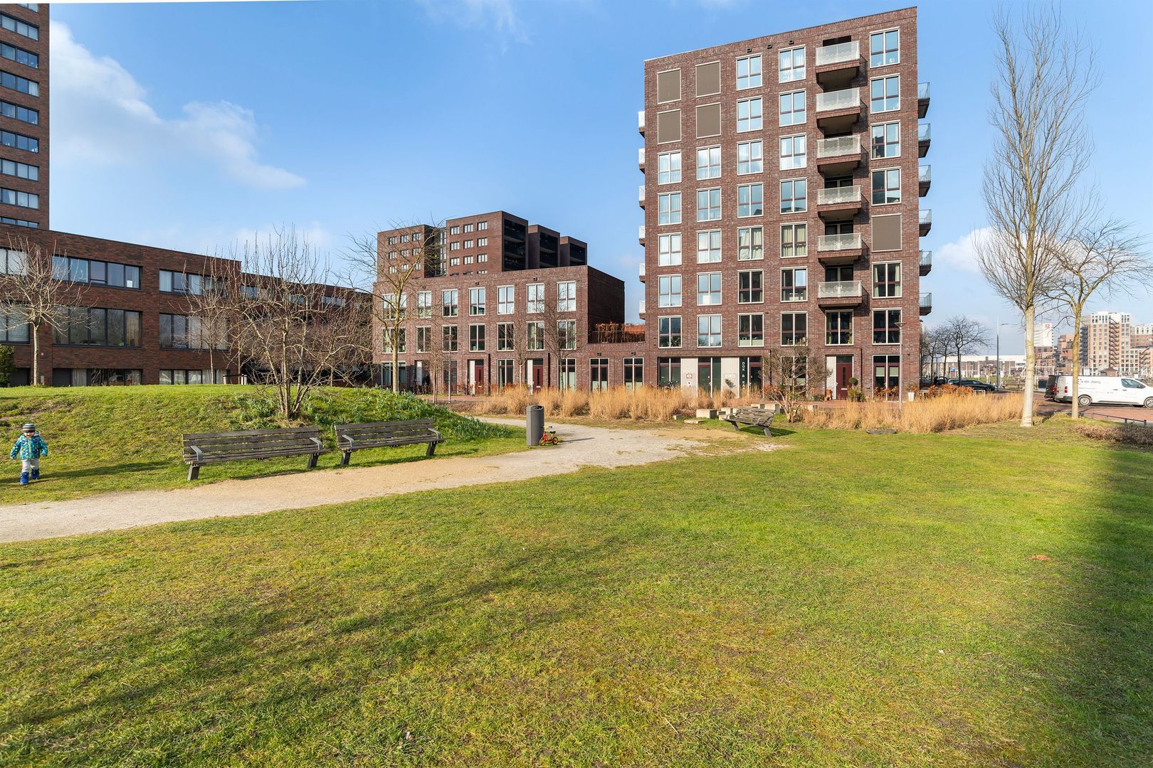 De Müllerpier is rustig met heel weinig (bestemmings) verkeer. Het appartement ligt aan de zijde van een groen parkje wat privacy biedt doordat er geen directe buren zijn. Dat parkje is een fijne speelplek en de autovrije ‘binnenkant’ van de pier zorgt voor veiligheid voor spelende kinderen. Er is een basisschool op loopafstand.