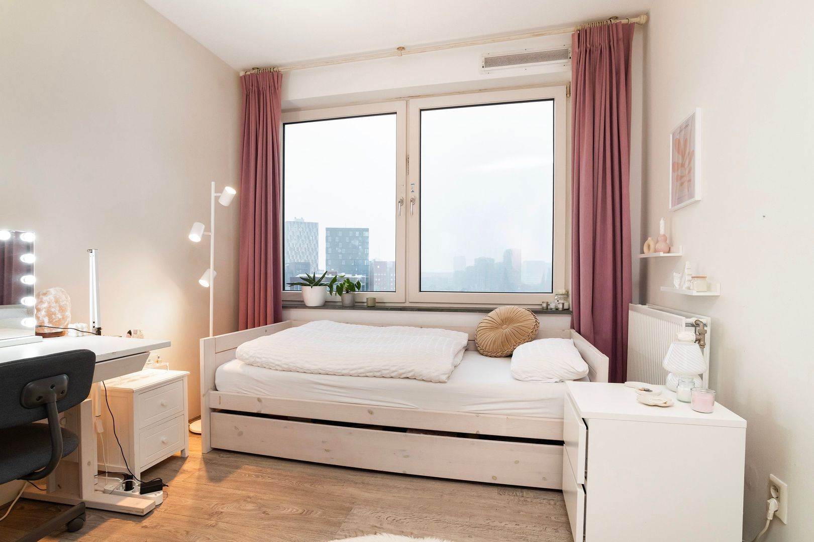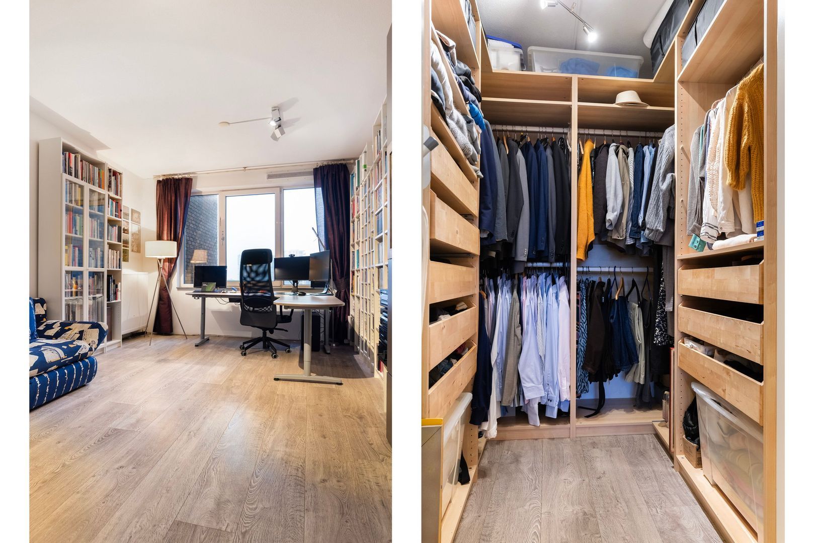 Vier slaapkamers (zeldzaam in de stad…), waarvan 3 gelegen op het koel blijvende Noorden en respectievelijk 15,5m², 11,5m² en 8,5m² groot. Groot genoeg voor forse kledingkasten.