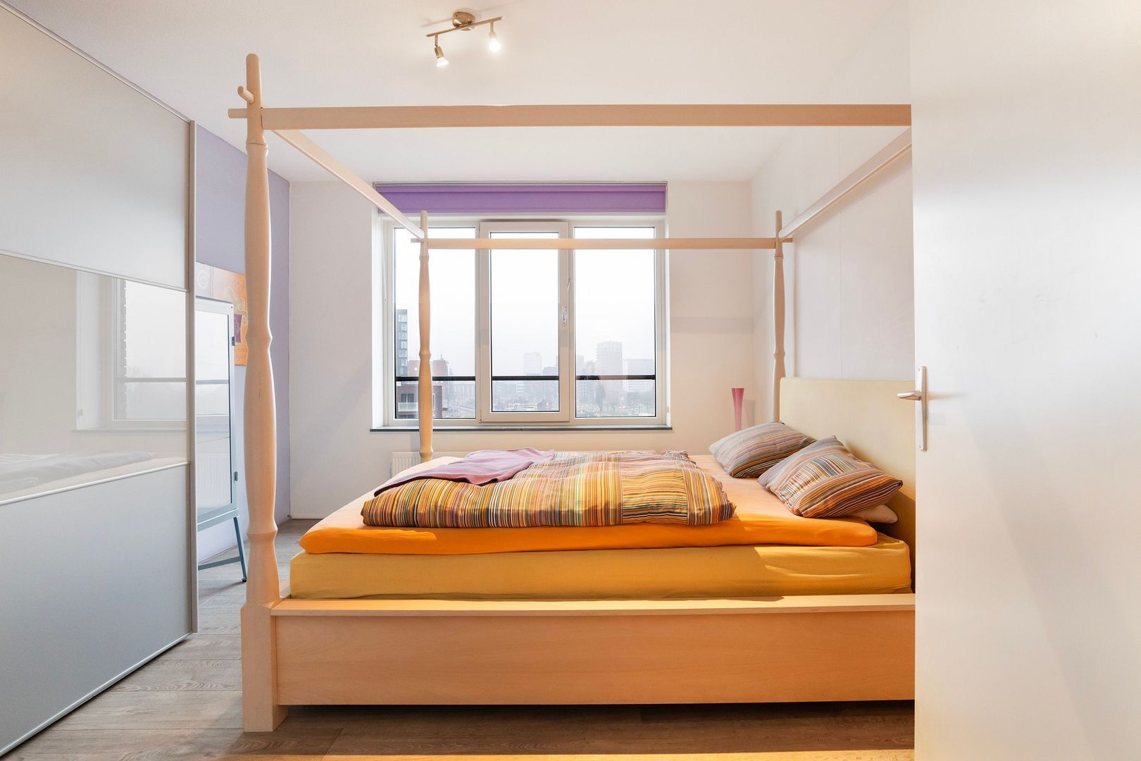 1 slaapkamer aan de westzijde ca. 21m² met een grote inloop-kleed/bergkast.