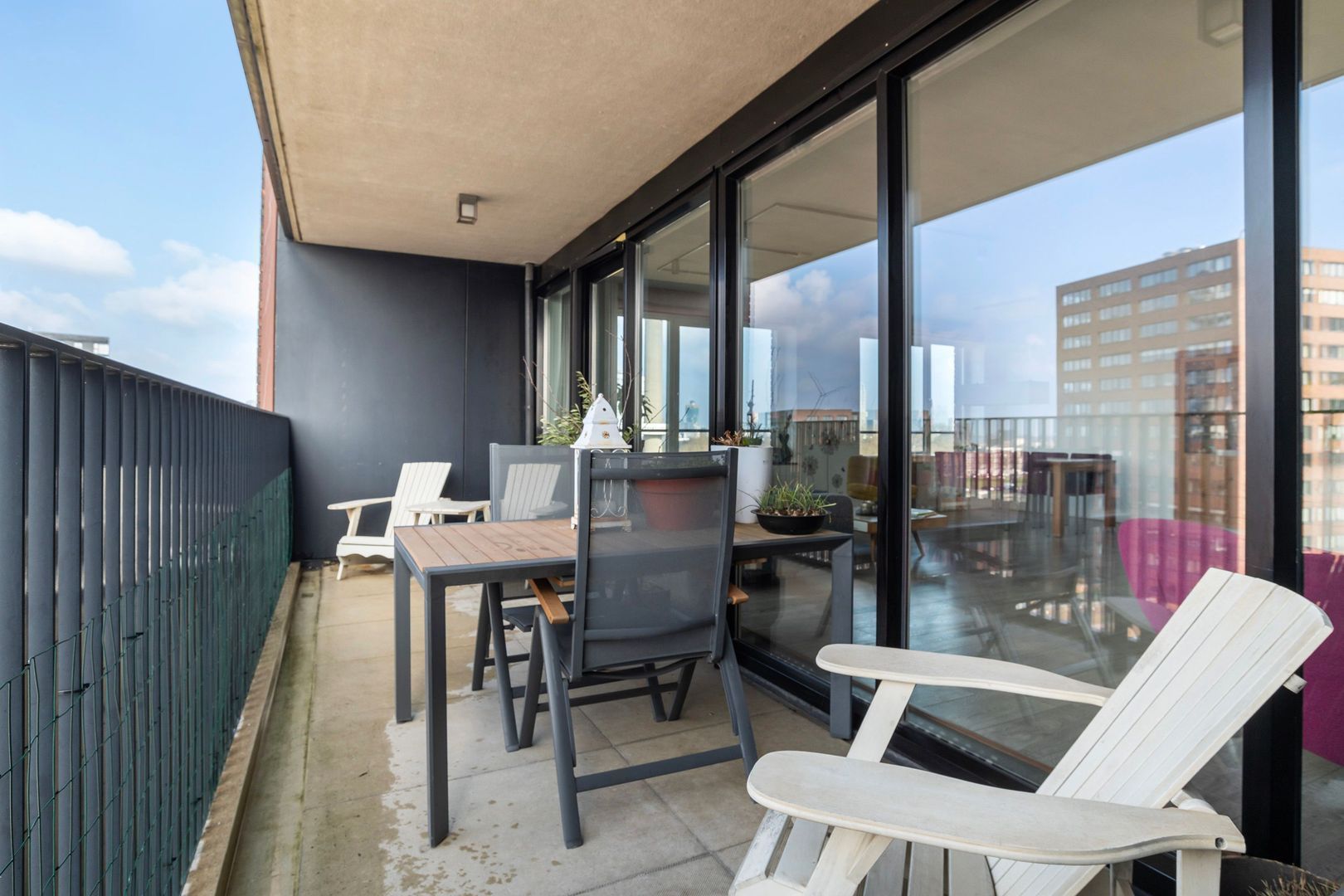 TERRAS (ca. 14 m²), gelegen op het zonnige westen. Goed geschikt voor een grote (gezins)tafel met wel 6 stoelen of een ultiem grote lounge-set! Een hapje en/of een drankje tot de zon pas erg laat onder gaat!