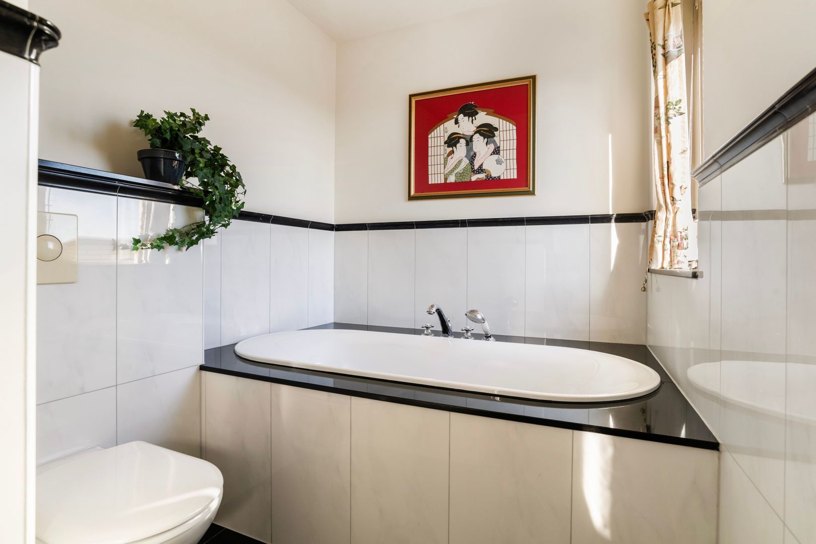 Badkamer: Royale badkamer voorzien van een ligbad, inloopdouche, dubbele wastafel, en een 2e wc.