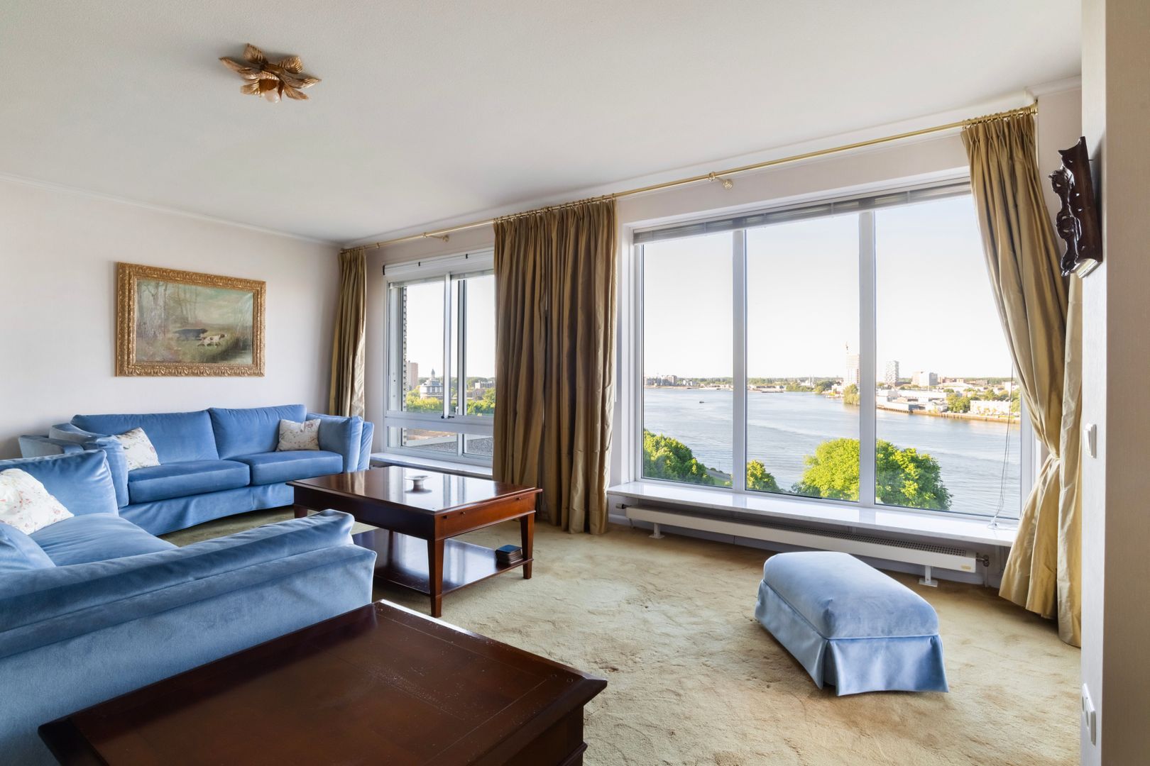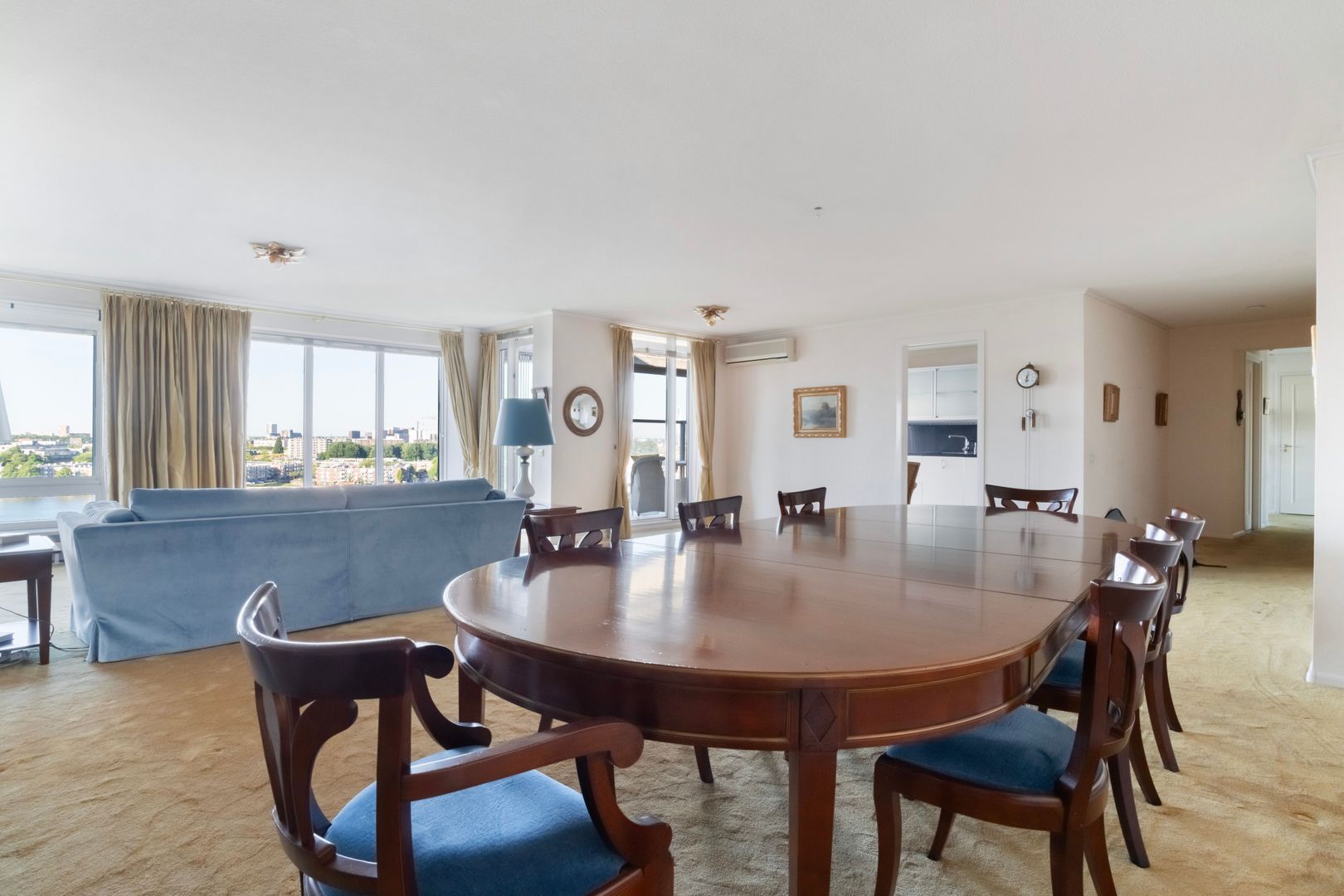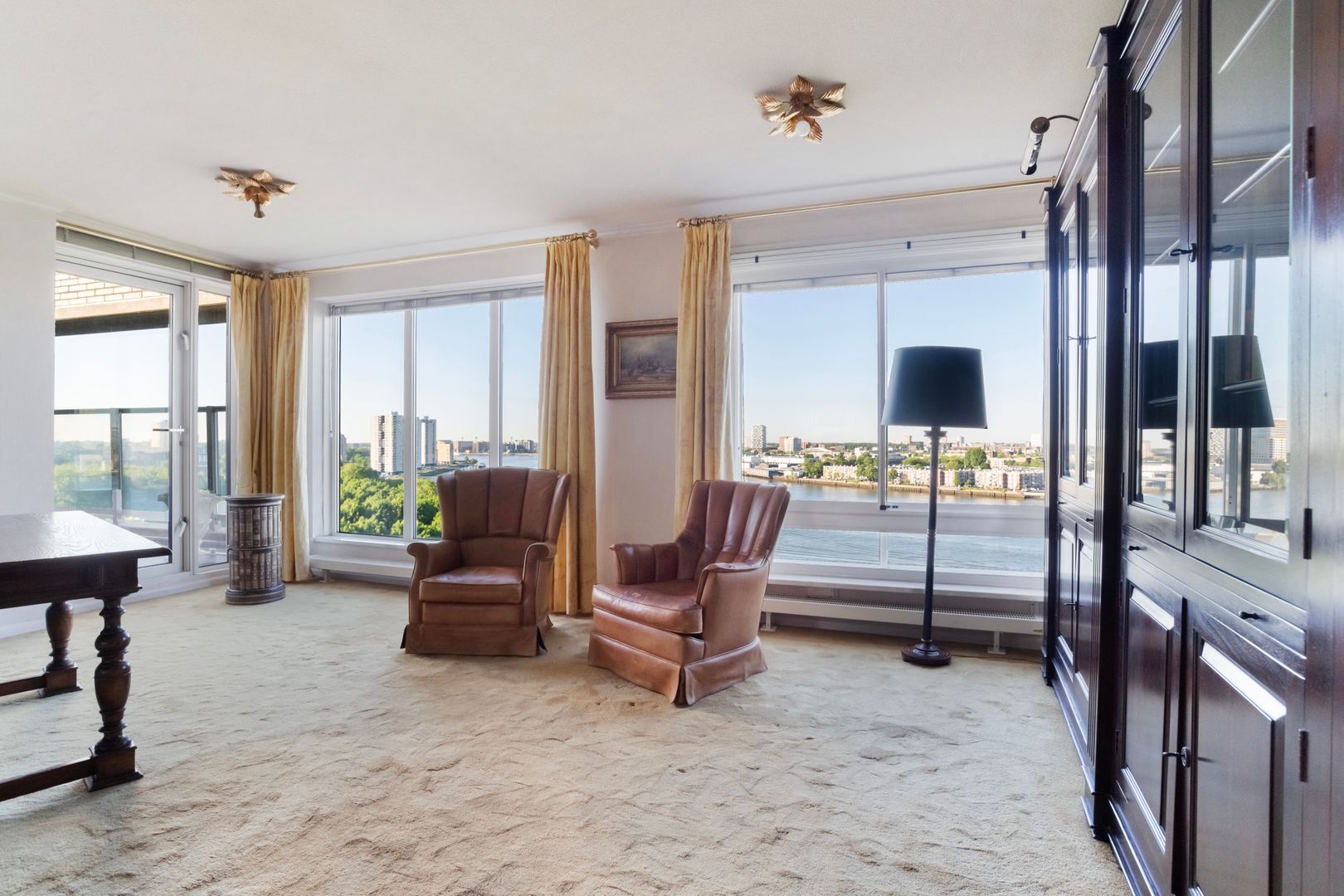 Gelegen op een toplocatie en aan de rustige Oostmaaslaan, met direct zicht op de Maas, met haar vele scheepsbewegingen en op de bruisende skyline van Rotterdam: zeer royaal 4-KAMER APPARTEMENT (voorheen 5 kamers; ca. 170 m²), met TWEE GROTE TERRASSEN ( samen ca. 35m²): Eén aan de rivier-/stadszijde en één aan de zijde van Kralingen en het Kralingse Bos. Het appartement is gelegen op de bovenste verdieping van ‘De Maasresidentie’ en deelt haar overloop met slechts 1 ander appartement. Er is een grote GARAGEBOX inbegrepen. En bovendien is er de mogelijkheid voor een tweede èn derde interne PARKEERPLAATS.