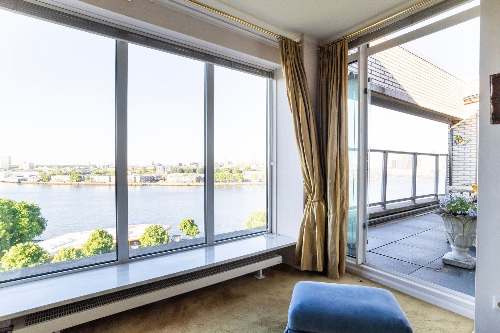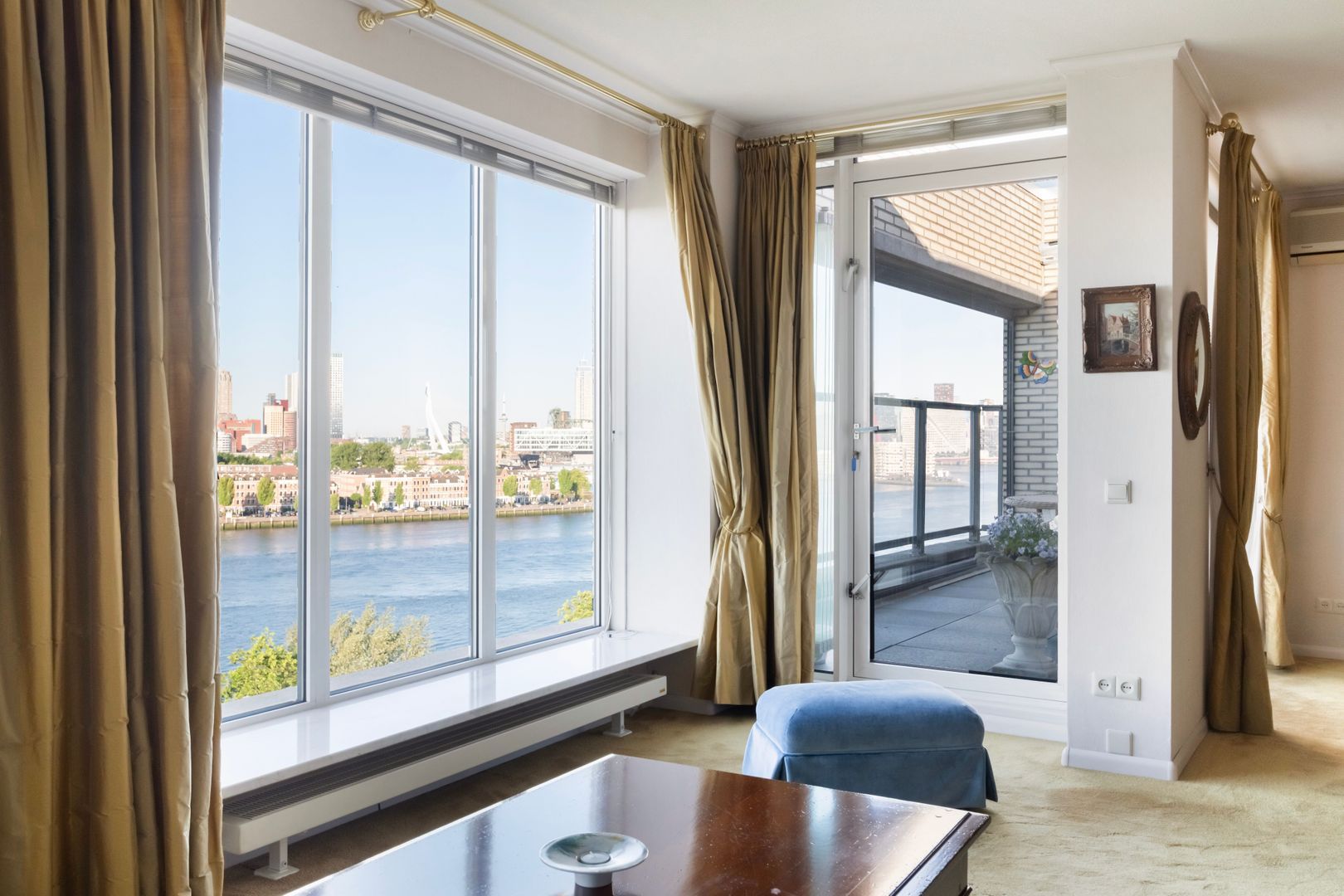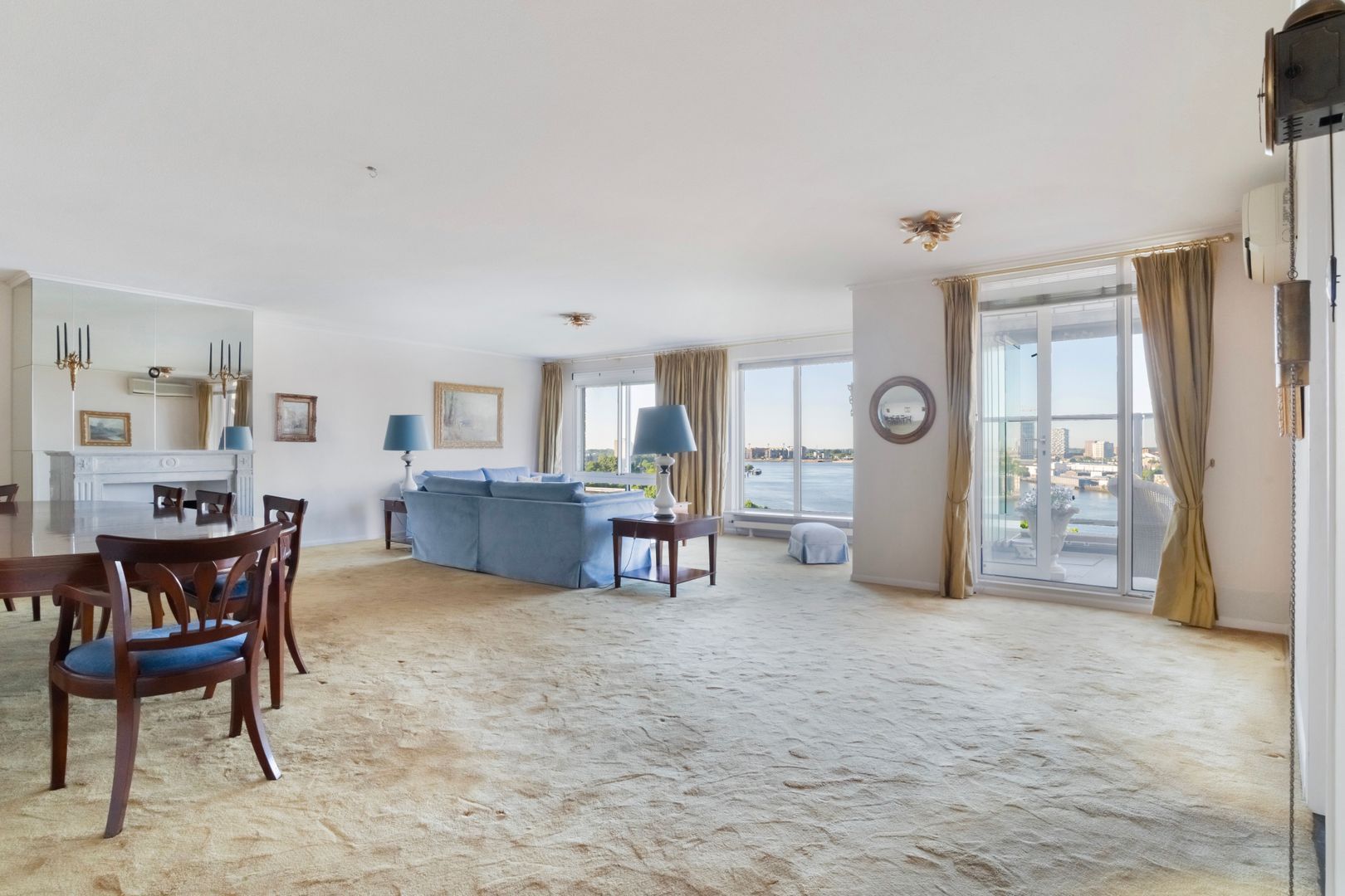 Gelegen op een toplocatie en aan de rustige Oostmaaslaan, met direct zicht op de Maas, met haar vele scheepsbewegingen en op de bruisende skyline van Rotterdam: zeer royaal 4-KAMER APPARTEMENT (voorheen 5 kamers; ca. 170 m²), met TWEE GROTE TERRASSEN ( samen ca. 35m²): Eén aan de rivier-/stadszijde en één aan de zijde van Kralingen en het Kralingse Bos. Het appartement is gelegen op de bovenste verdieping van ‘De Maasresidentie’ en deelt haar overloop met slechts 1 ander appartement. Er is een grote GARAGEBOX inbegrepen. En bovendien is er de mogelijkheid voor een tweede èn derde interne PARKEERPLAATS.