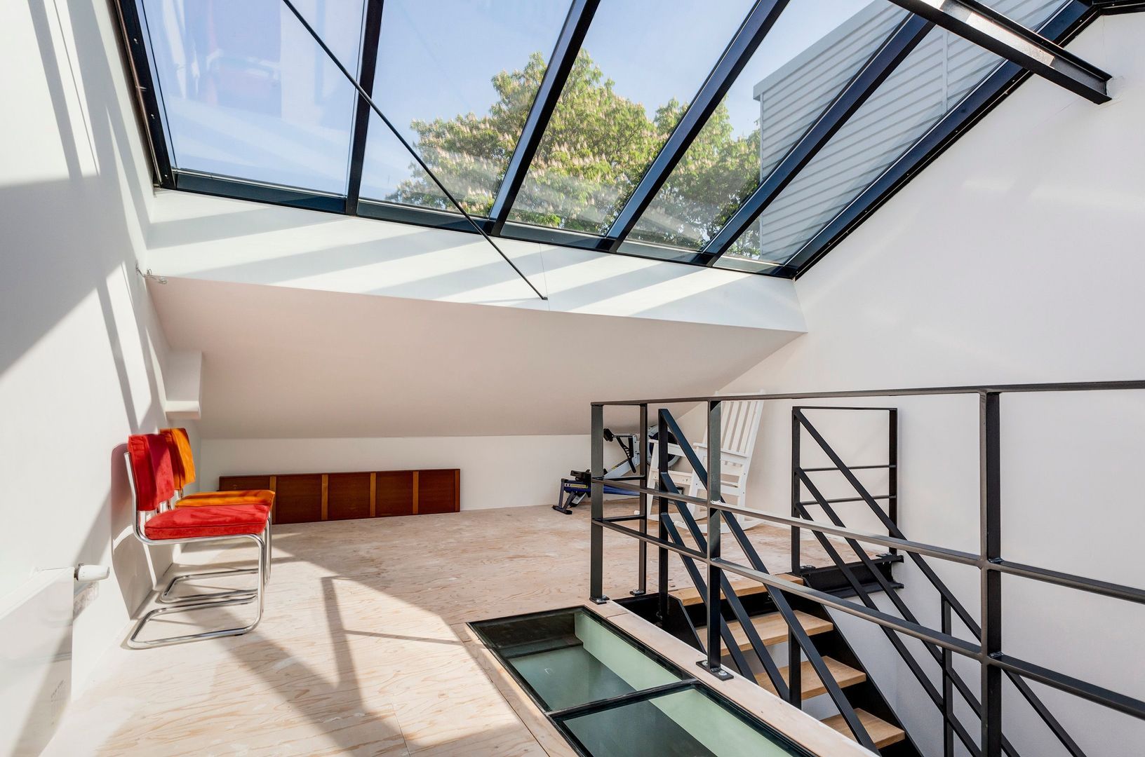 Open ruimte ca. 19m2 met een geheel glazen dak.