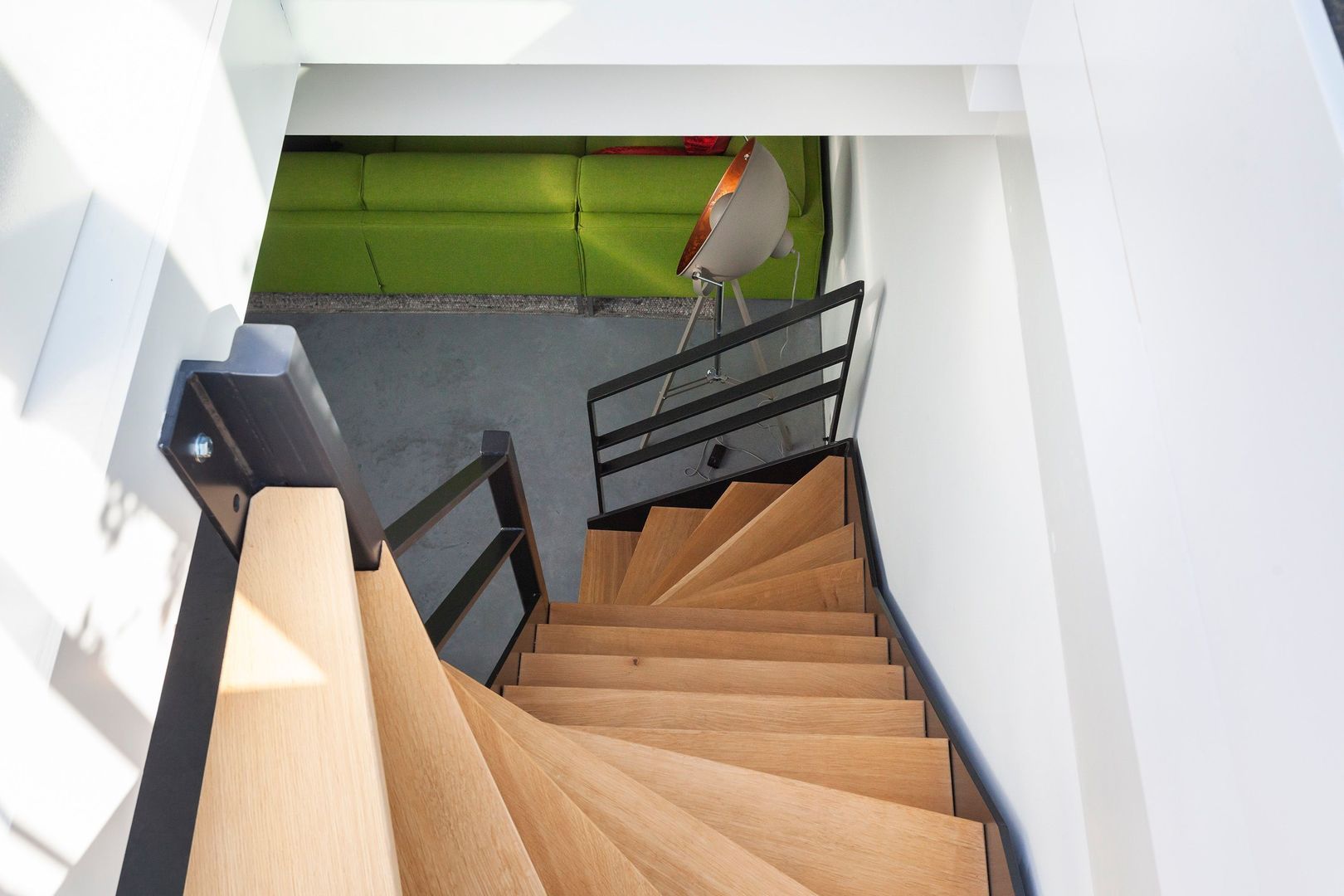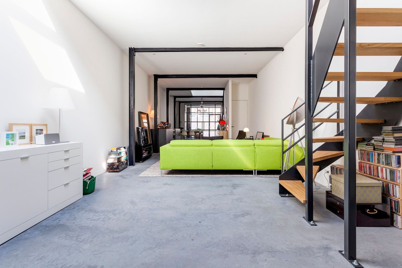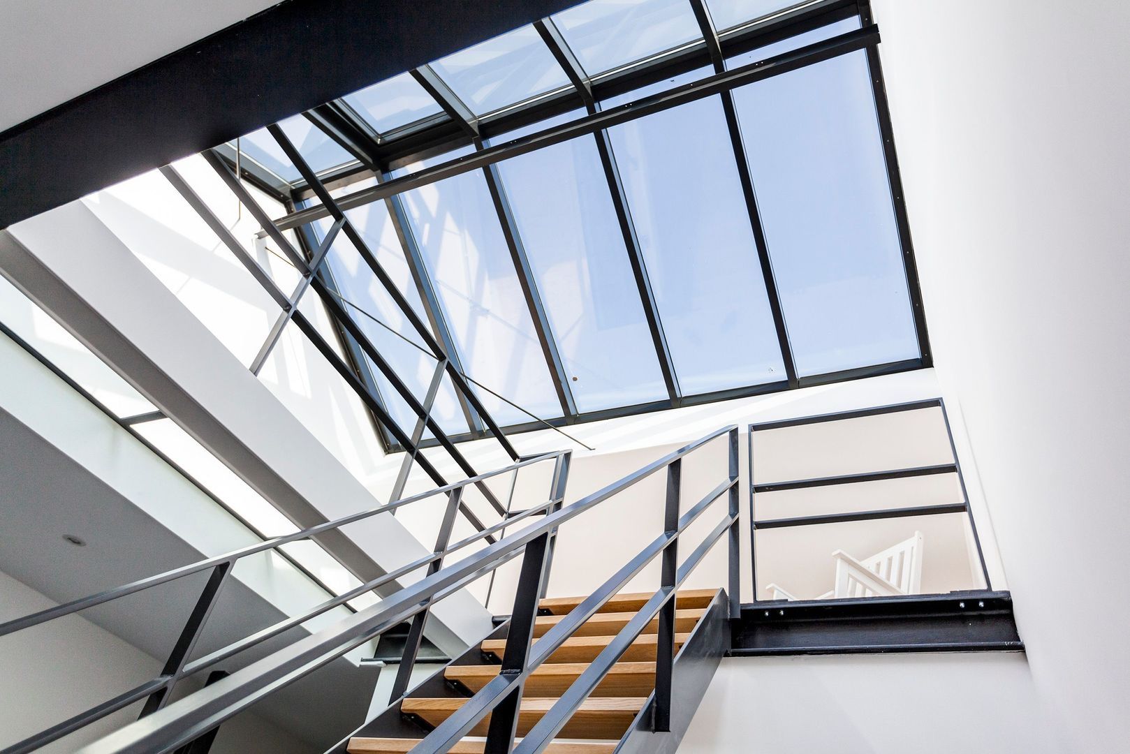 Dit huis (ca. 185m2), is ontstaan na transformatie van een bedrijfspand tot een zeer licht en ruim woonhuis. Karakteristiek is onder andere het centraal geplaatste stalen trappenhuis onder een enorme glazen licht-opening in de kap.