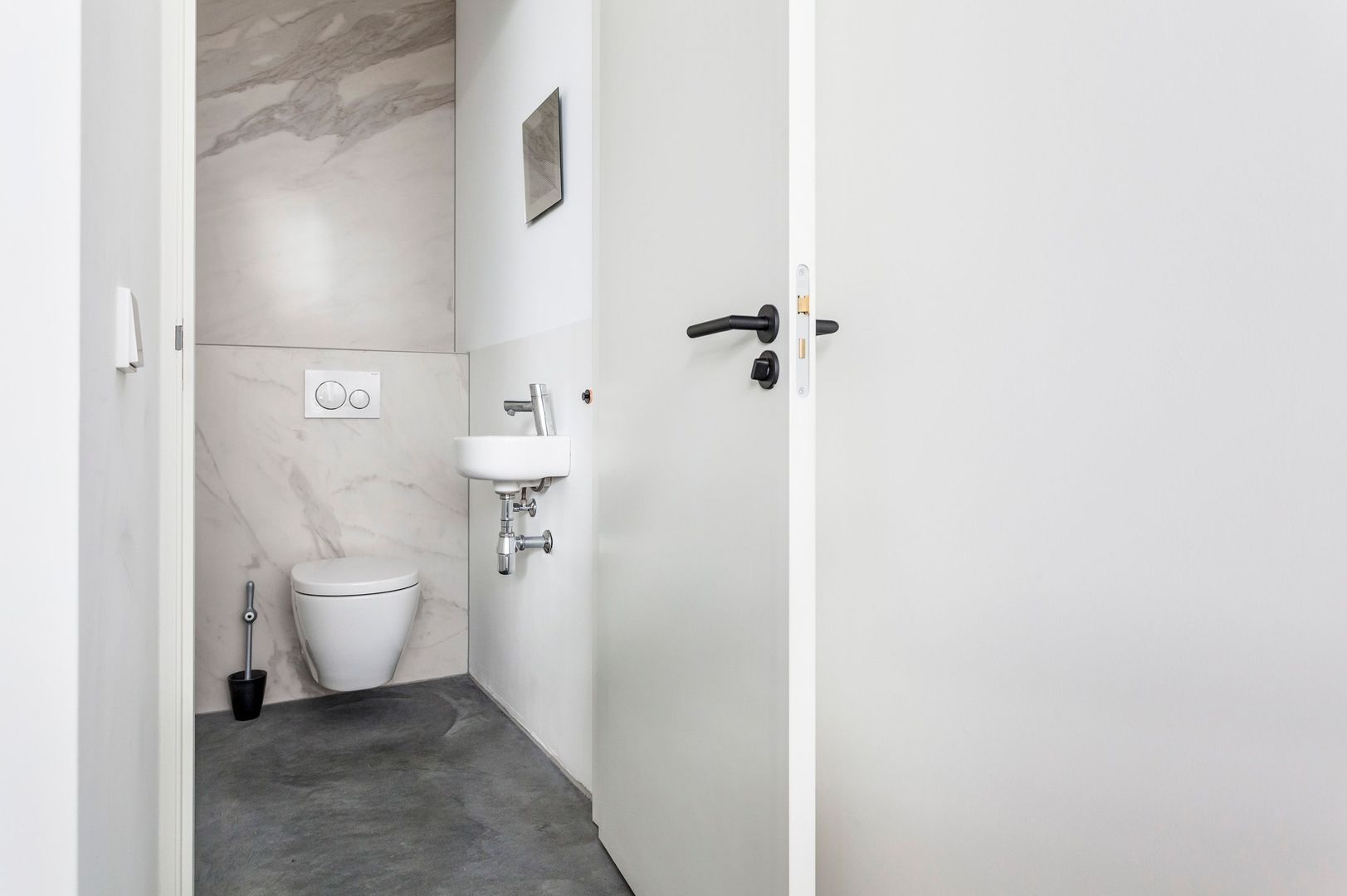 Toiletruimte met hangcloset en wasbakje.