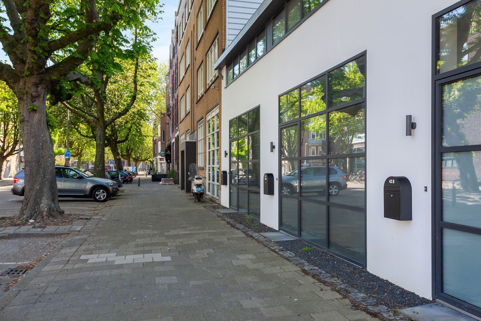Dit deel van de Pieter de Hoochstraat kenmerkt zich vooral door zeer brede trottoirs, oude kastanjebomen en rust, midden in bruisend Delfshaven, het toekomstig SOHO van Rotterdam!