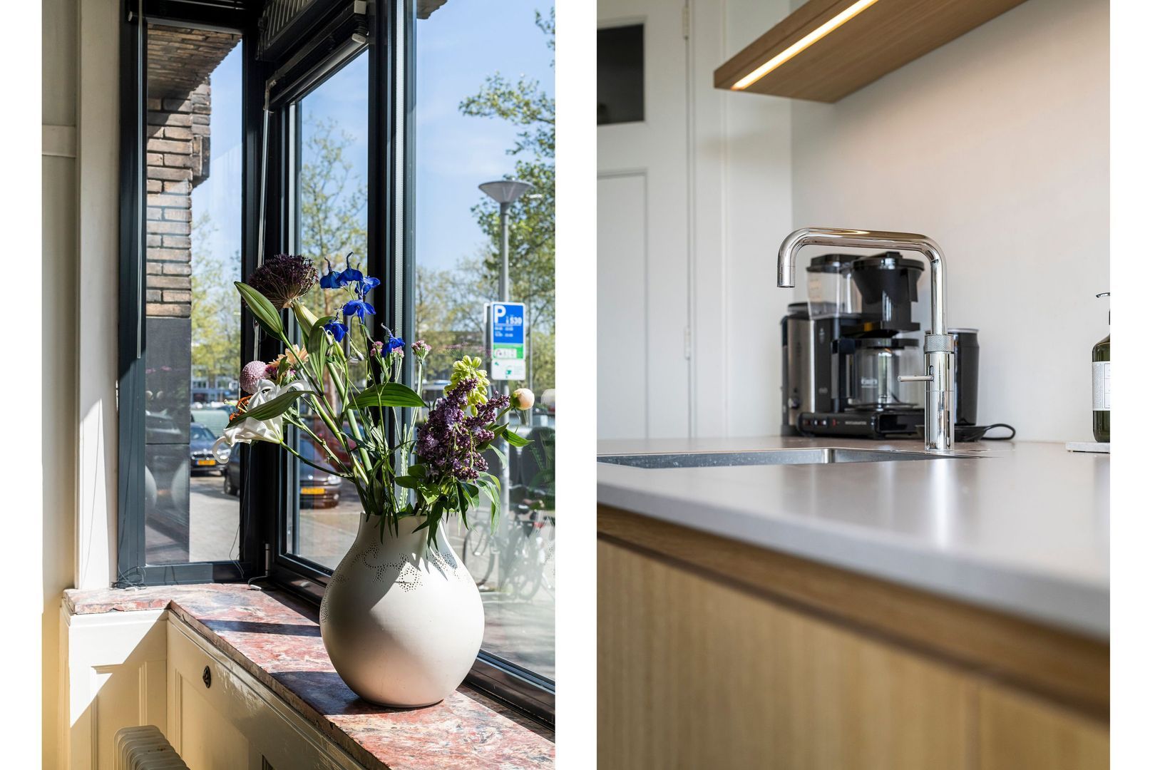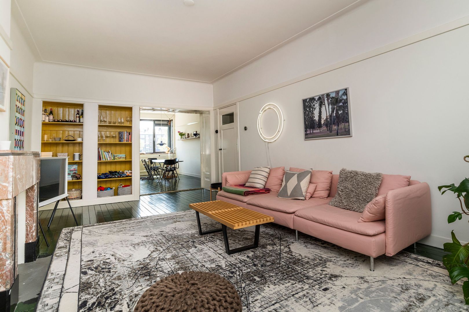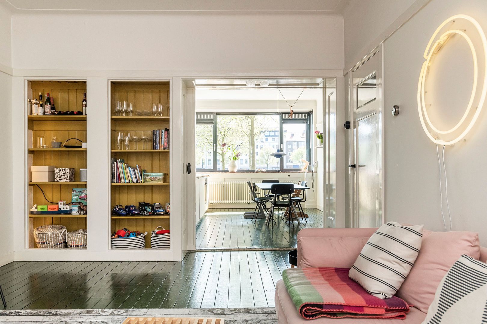 Ruime living (1 en 2) totaal ca. 45 m2 met inbouwkasten, aan de voorzijde een moderne keuken (vernieuwd 2021) met diverse hoogwaardige inbouwapparatuur en aan de achterzijde toegang naar TERRAS en TUIN.