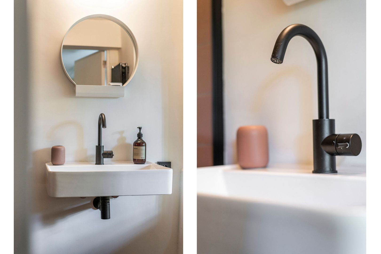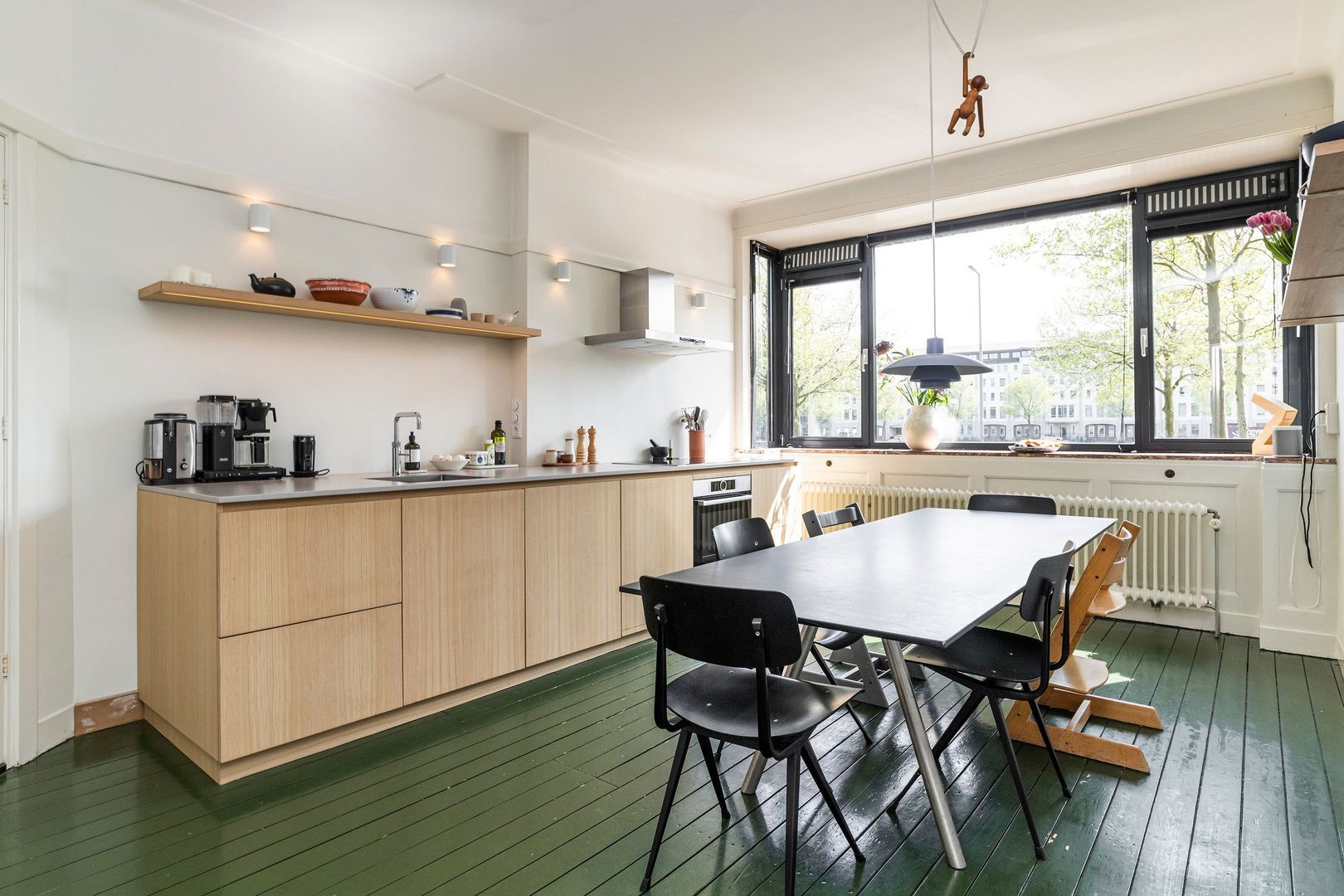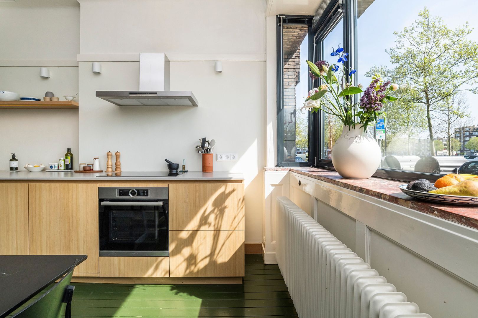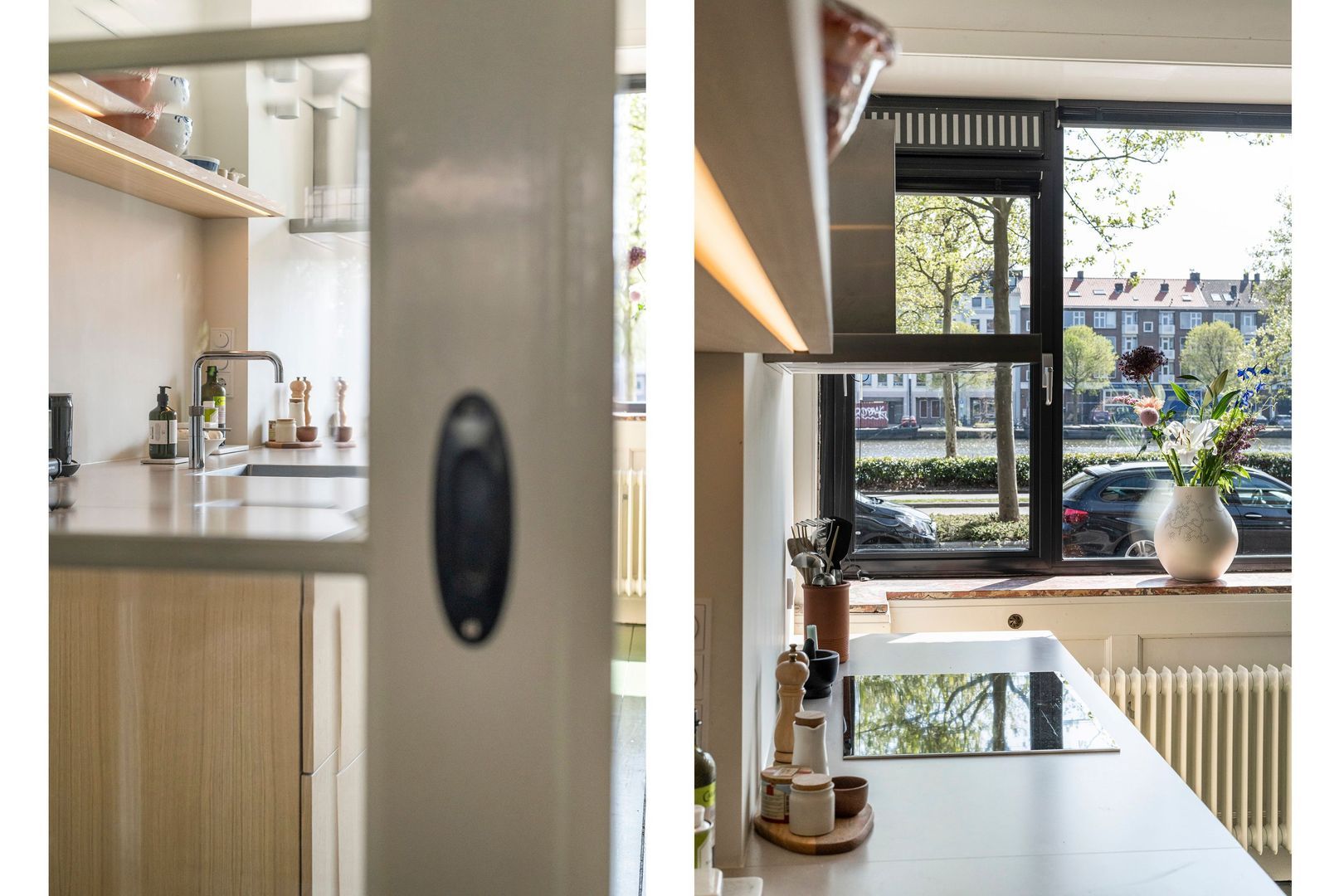 Ruime living (1 en 2) totaal ca. 45 m2 met inbouwkasten, aan de voorzijde een moderne keuken (vernieuwd 2021) met diverse hoogwaardige inbouwapparatuur en aan de achterzijde toegang naar TERRAS en TUIN.