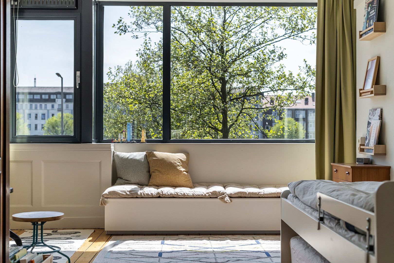 Grote slaapkamer (8) ca. 20m², aan de rustige tuinzijde.