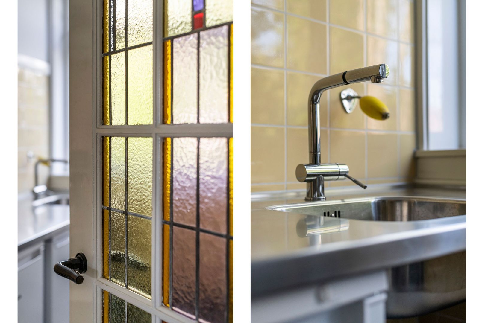Bijkeuken (3) ca. 6 m2 met originele inbouwkast aan tuinzijde.