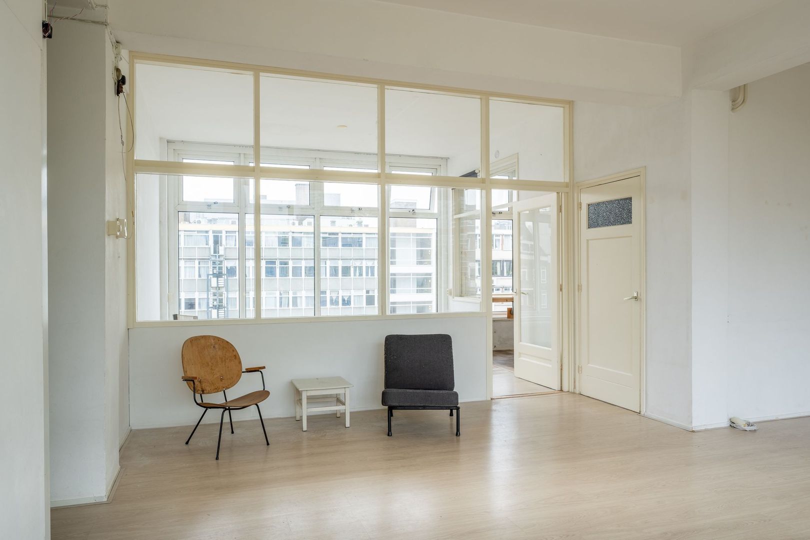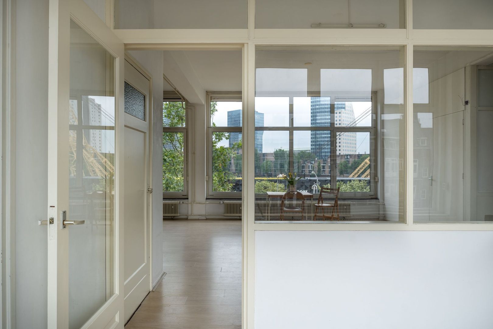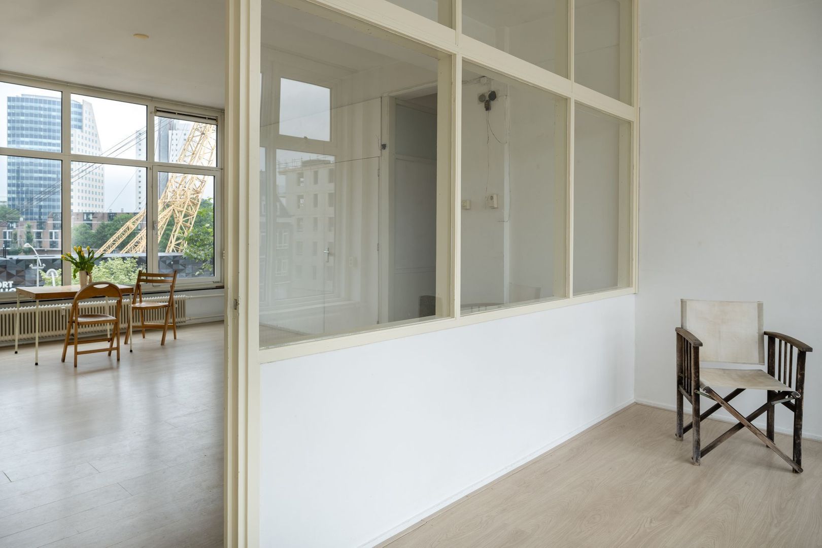Sfeervolle, unieke en hoge ruimte (hoogte 3.10 m). Ontstaan na transformatie van een scheepvaartkantoor, onderdeel van een wederopbouw-icoon uit de jaren ’50. De huidige verdeling in 3 verschillende ruimten is eenvoudig te veranderen in 1 oerwoon en – werkplek. Ideaal voor creatieve mensen.