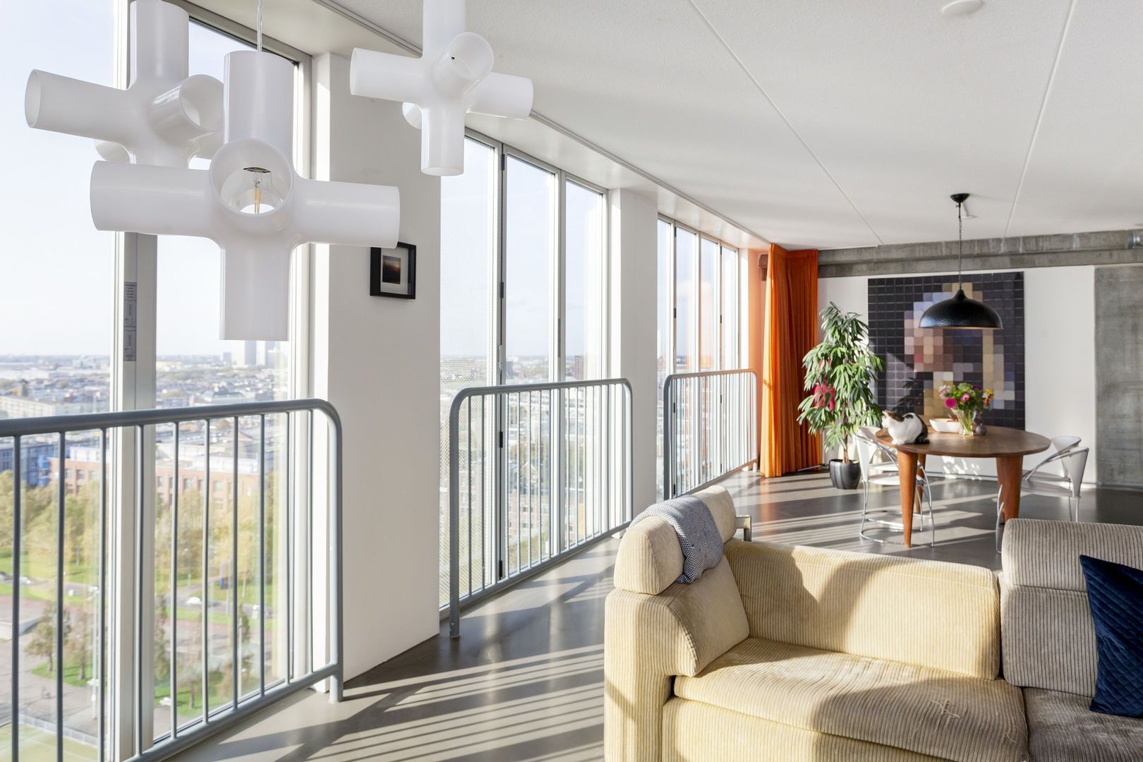 Fraai en functioneel vormgegeven 3- KAMER LOFT APPARTEMENT (ca. 135m2) op de 14e verdieping (voor kenners; de hoge schijf…) van de eigenzinnige “Schiecentrale” op een geweldig vrije plek in het Lloydkwartier. Met een ‘glazen’ gevelbreedte van ca. 10 METER(!) aan Westzijde èn ca. 10 METER(!) aan Oostzijde zijn de vrije dag- en nacht vergezichten onovertroffen!