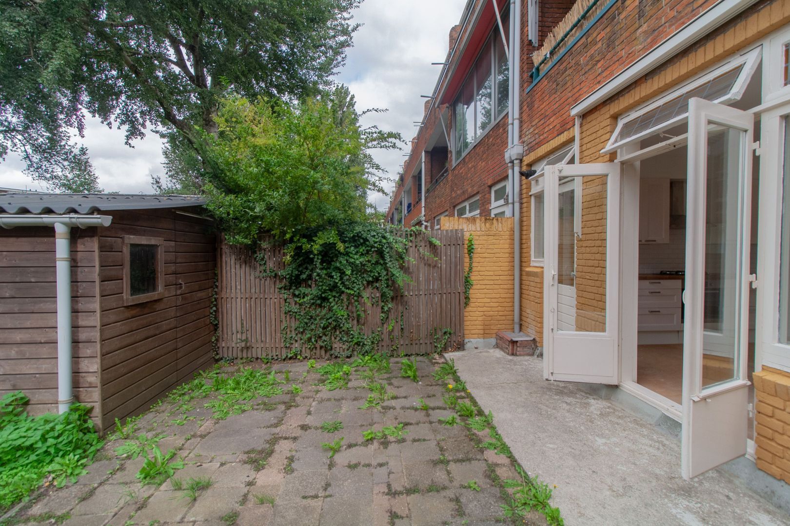 De tuin (met grote houten schuur) heeft recent een stevige nieuwe schutting gekregen; de straat is (bijvoorbeeld met de fiets) makkelijk bereikbaar door een af te sluiten poort.
