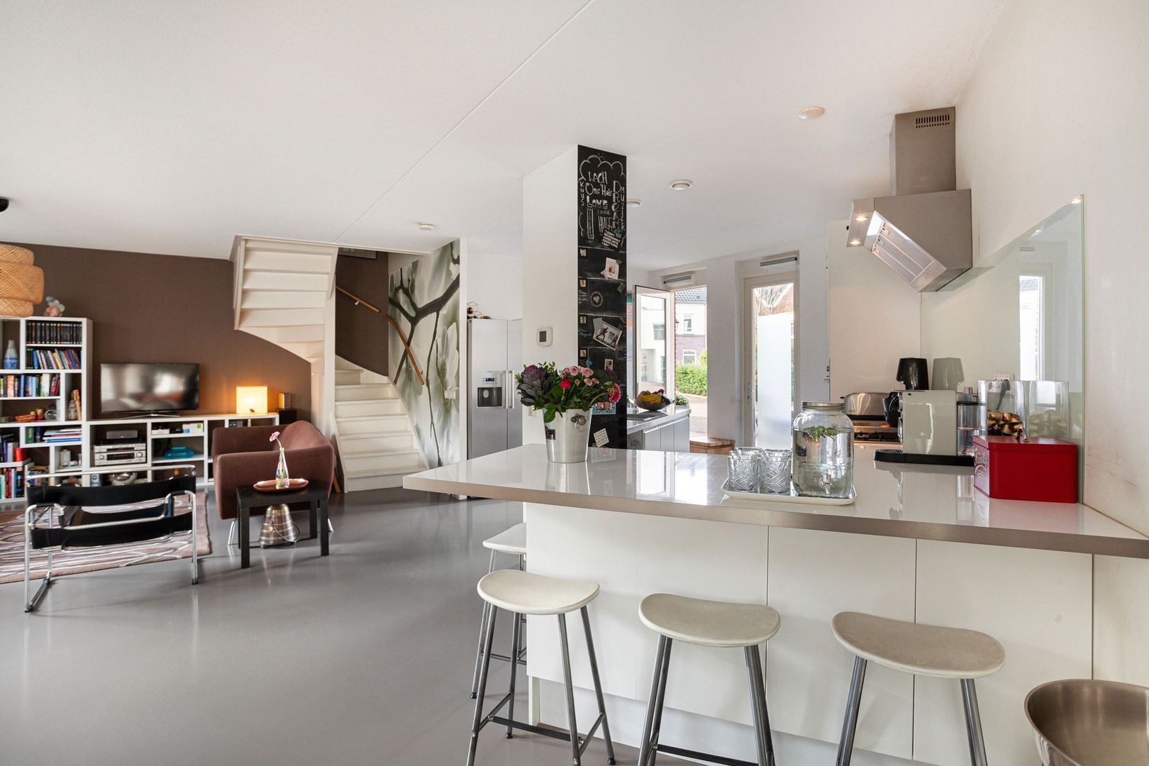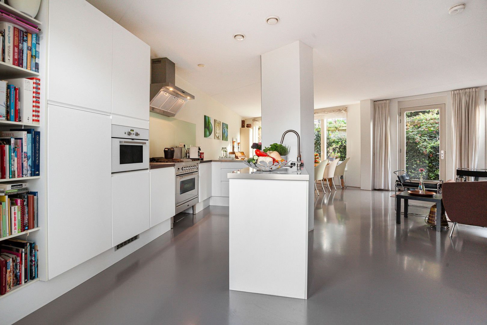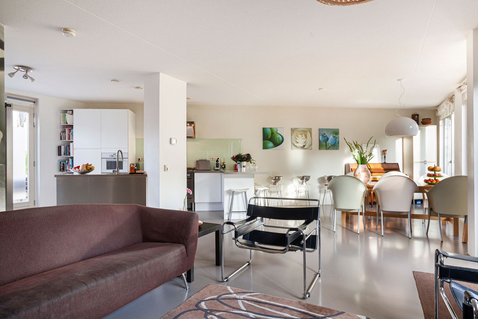 Enorme leefruimte (1) ca. 57m² , bestaande uit een breed (10,50m) zit- en eetgedeelte met veel glas en een deur naar de TUIN. Een open keukenruimte met een neutraal moderne opstelling en alle wenselijke inbouwapparatuur.