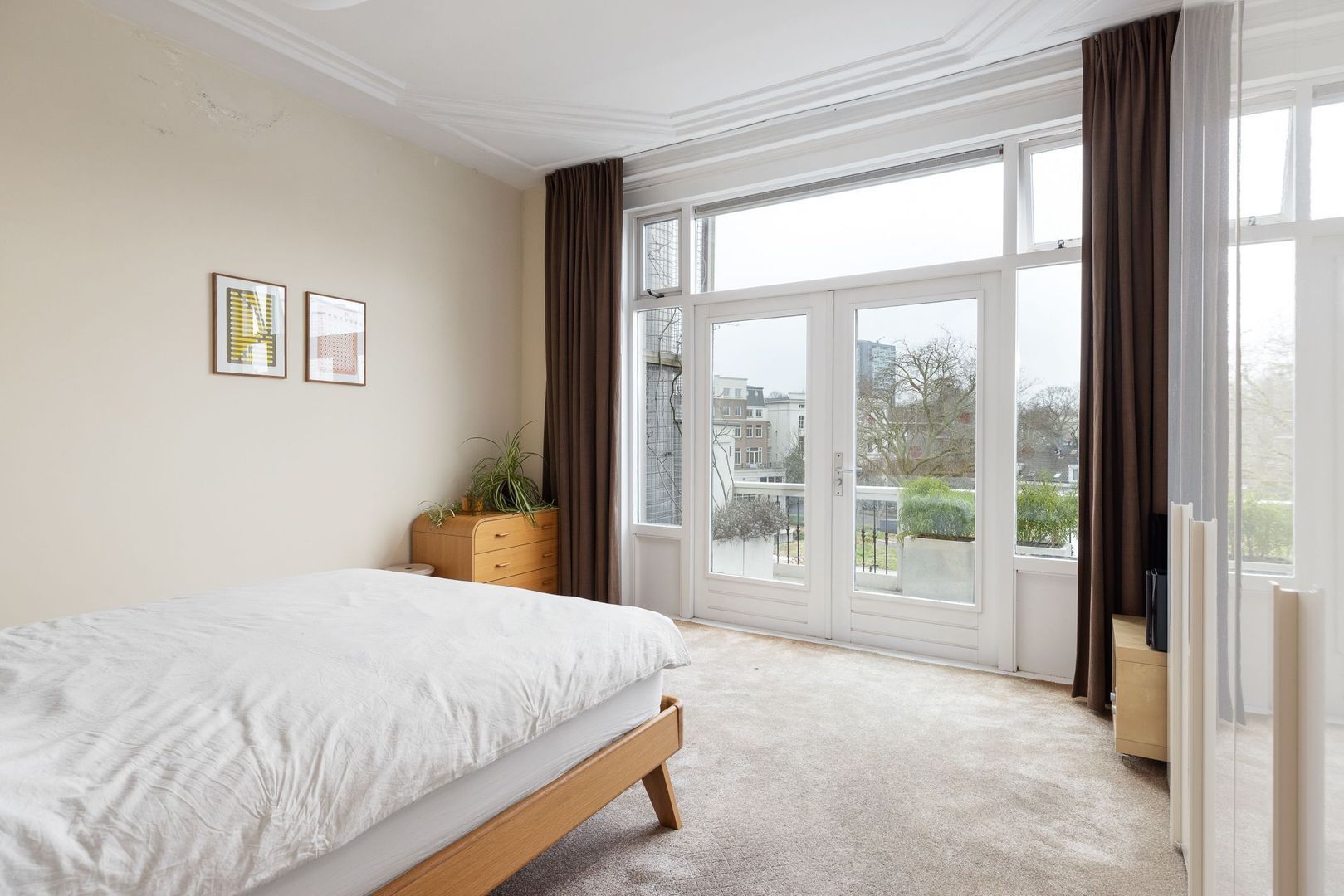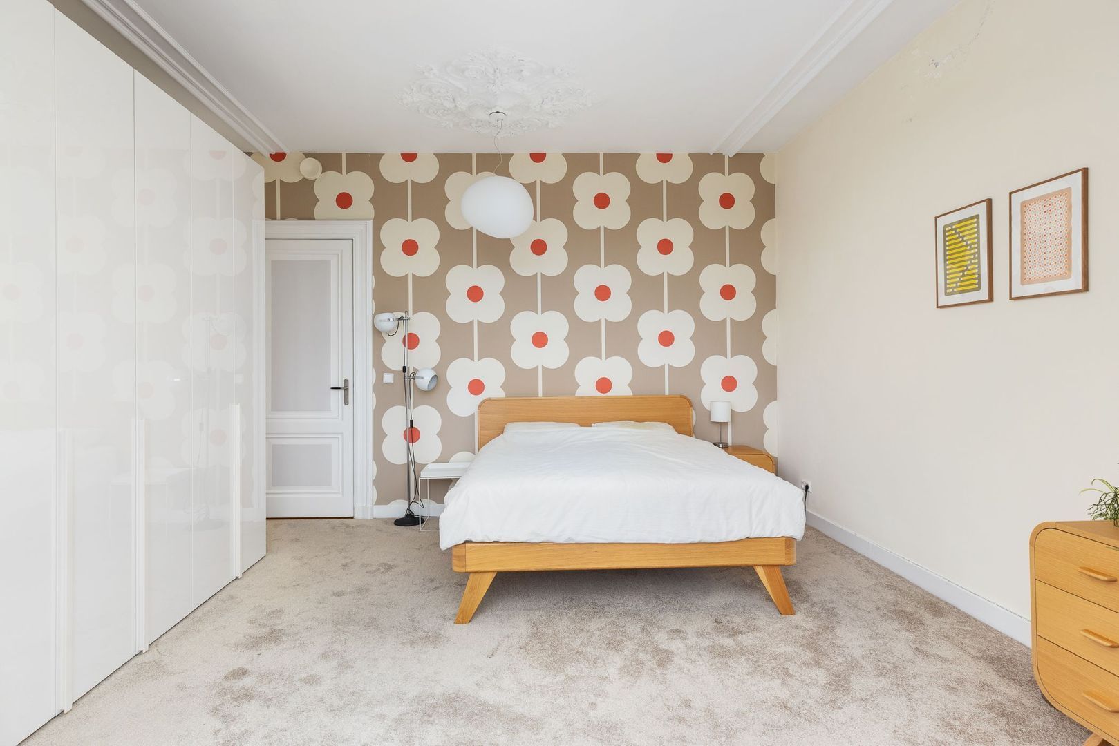 Slaapkamer (2) ca. 18m²  met geornamenteerd plafond, openslaande deuren naar: TERRAS op het zuidwesten
