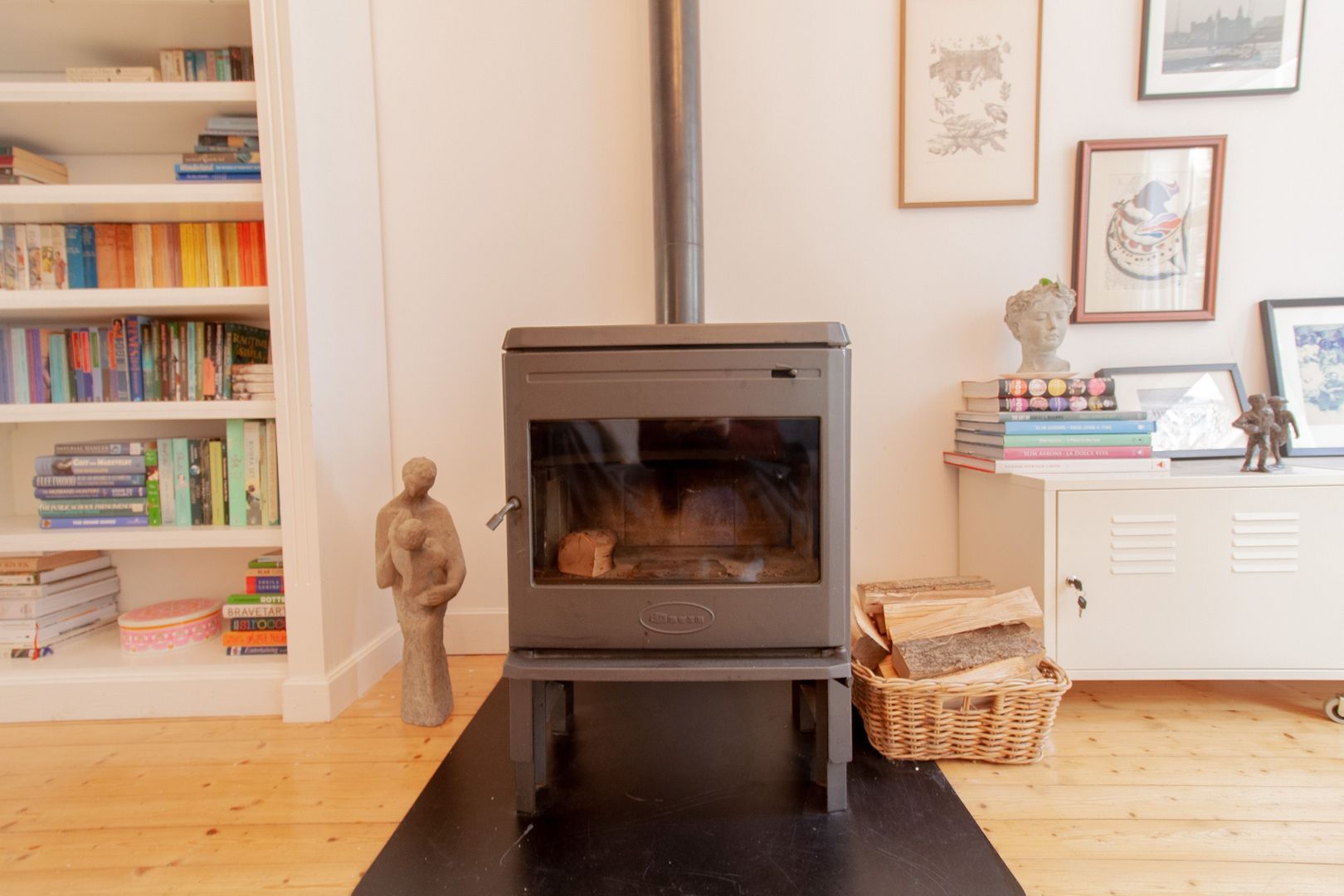 Living (1) (belétage) ca. 33 m2 bestaande uit een zitgedeelte met houtkachel en open keukenruimte/dinergedeelte met een moderne hoekopstelling voorzien van alle inbouwapparatuur. Doorloop naar: