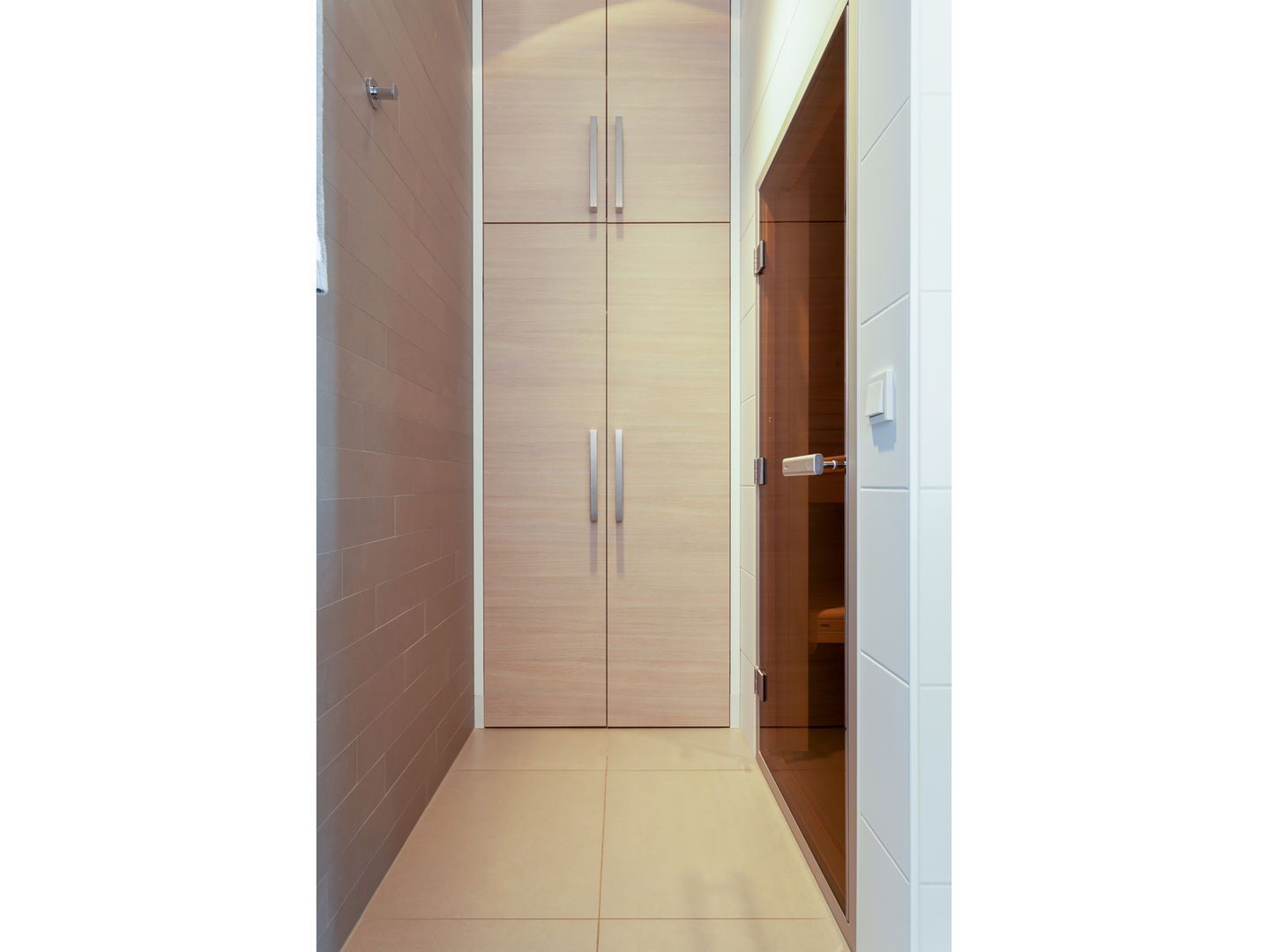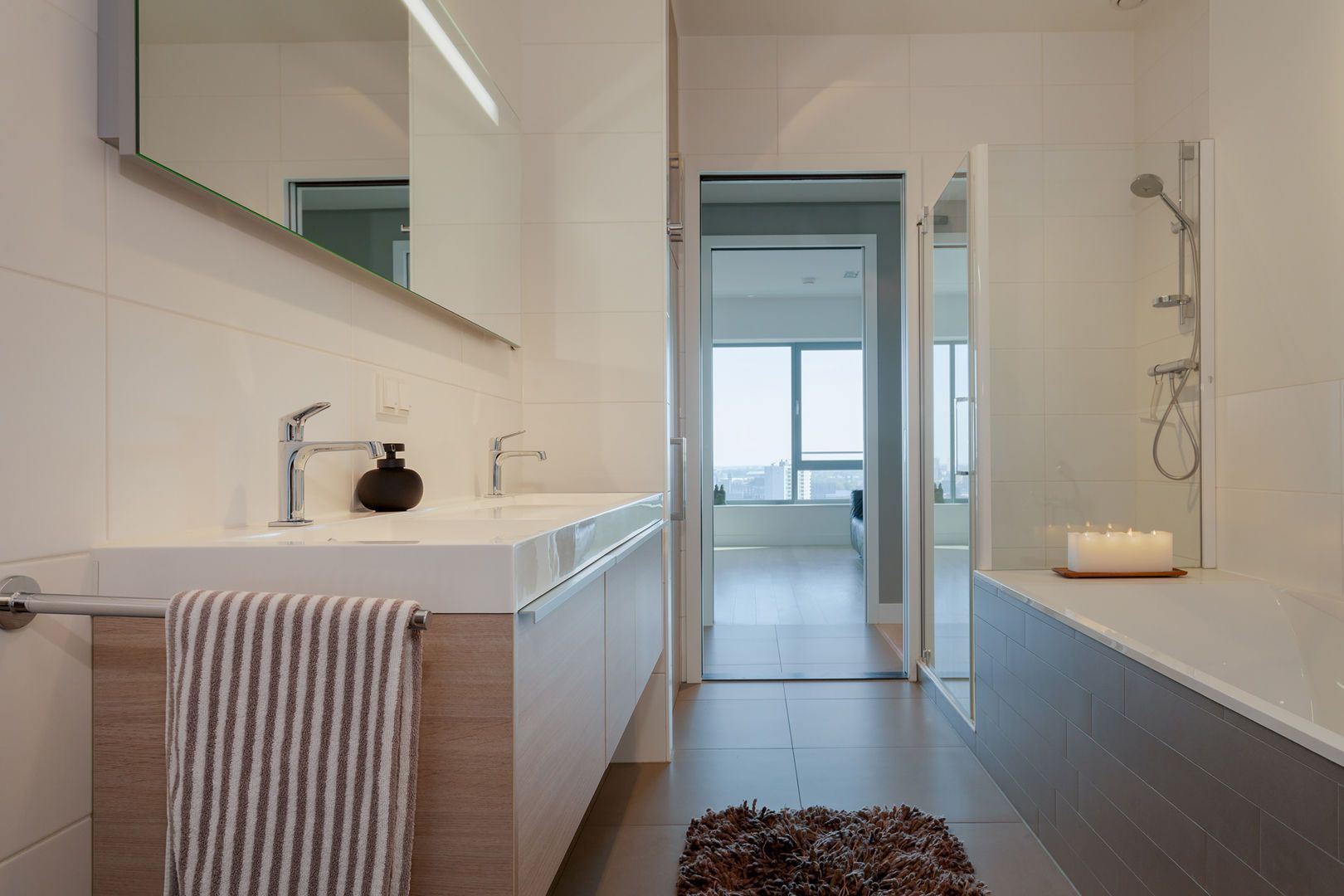 – Riante, luxe badkamer (ca.15m²) met douche, duo-ligbad, dubbel wastafelmeubel, multifunctioneel hangcloset met uitgebreide bidet functies en maatwerkkasten voor was-apparatuur en linnengoed. B&W stereo box ingebouwd in het plafond.