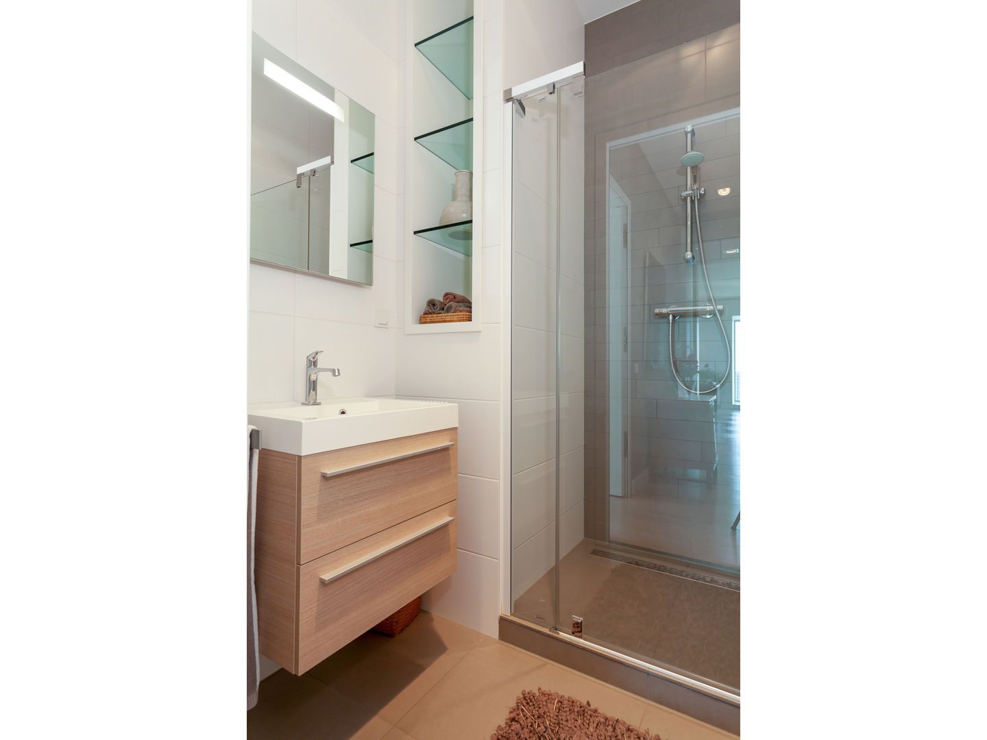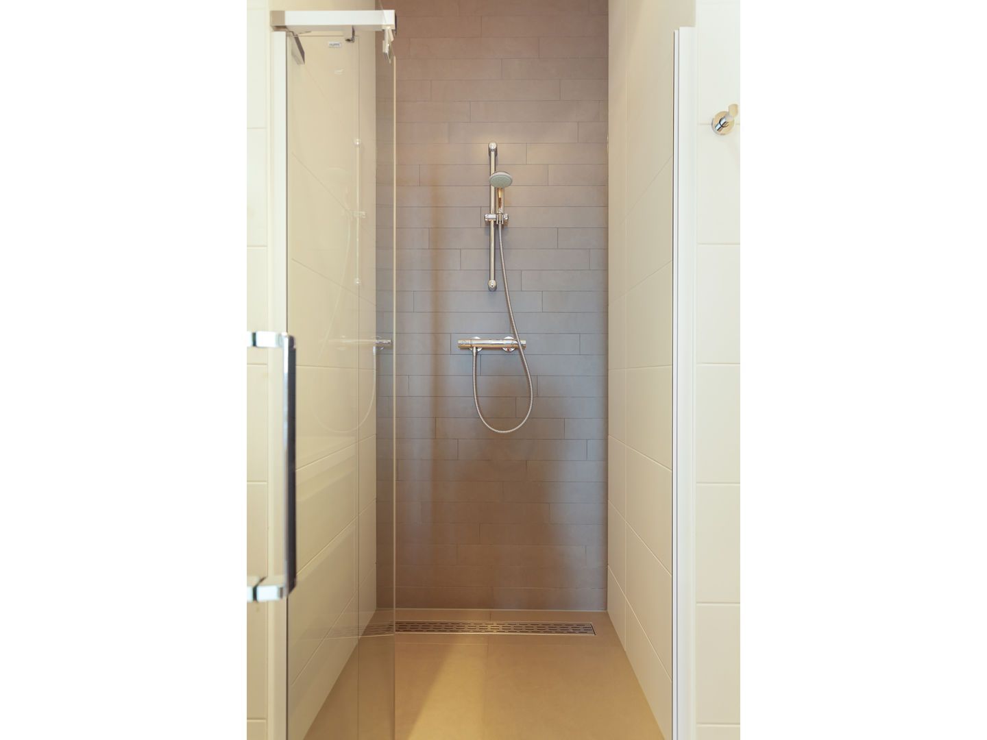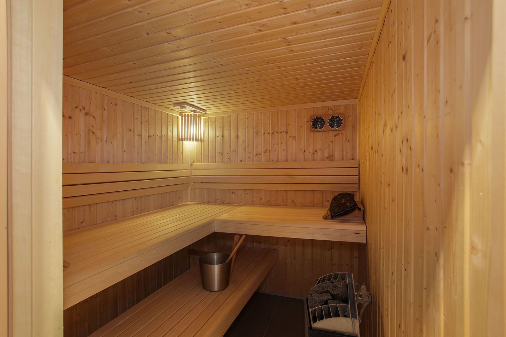 - Ruim bemeten sauna (ca. 4,5m²) met banken in L-opstelling.