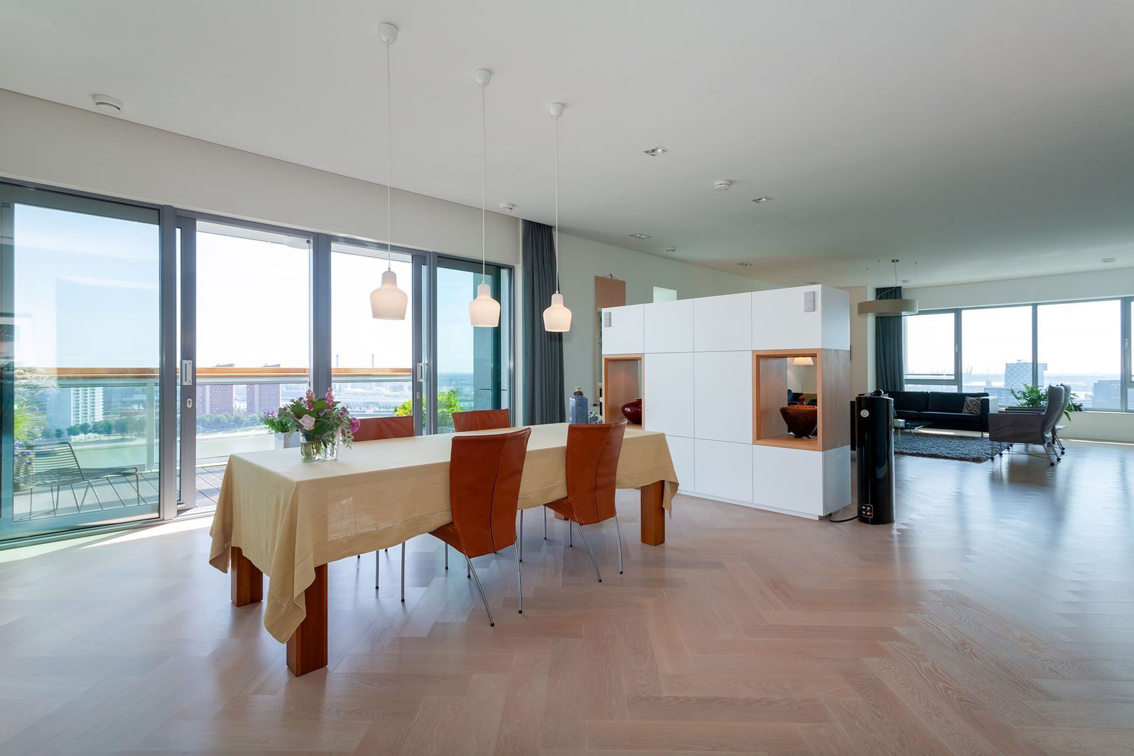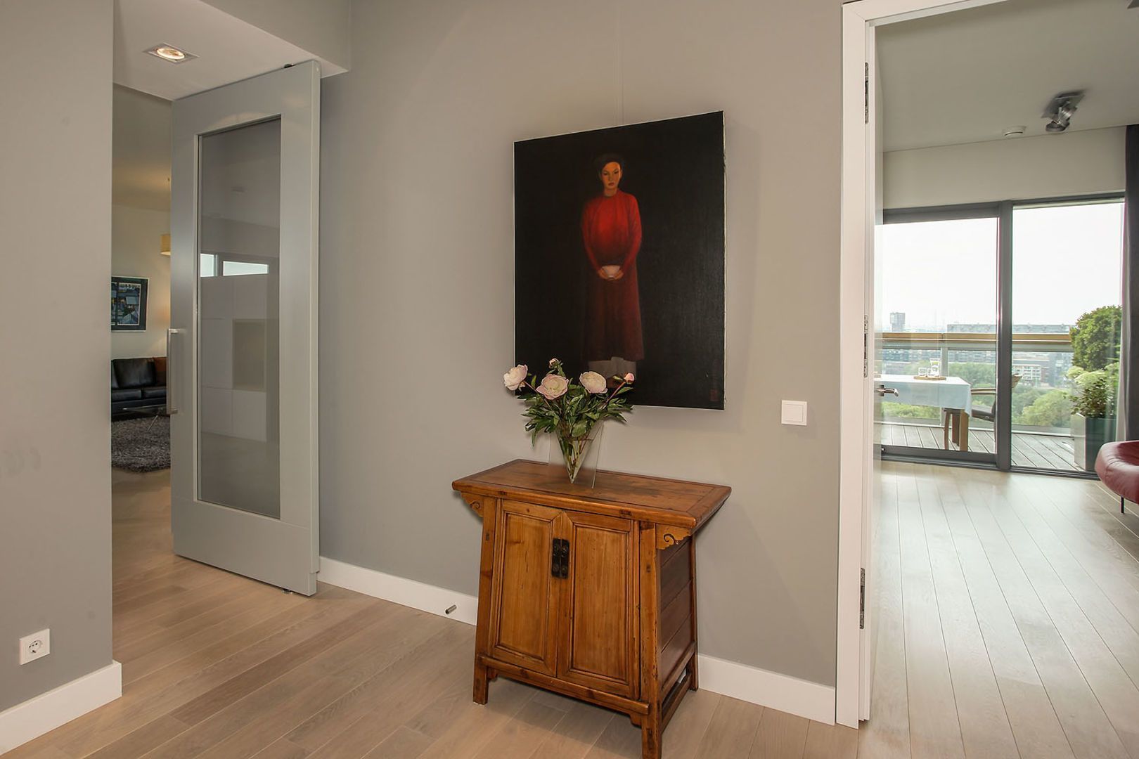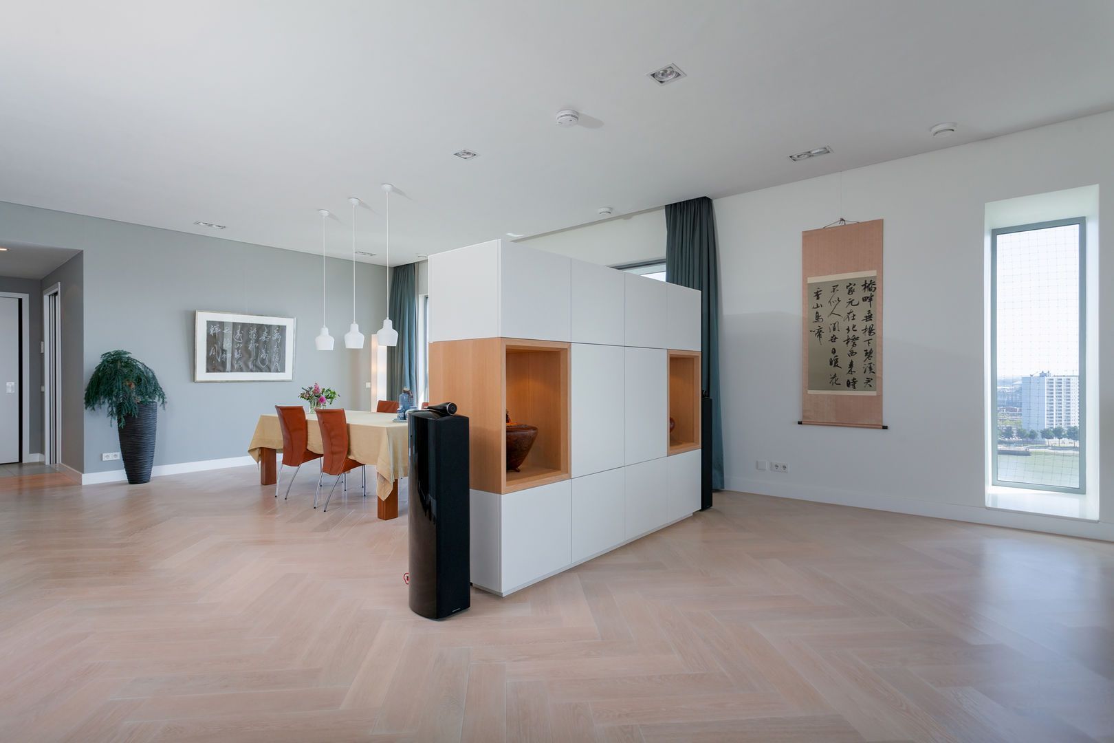 Bijzonder in het appartement is de kamerhoogte van bijna 3 meter, het akoestisch plafond, het verlichtings- en audioplan, het schilderij ophangsysteem, maatwerk deuren, vloerverwarming en - koeling in alle vertrekken, de zeer uitgebreide keuken- en badkameruitrusting en de ruime sauna.