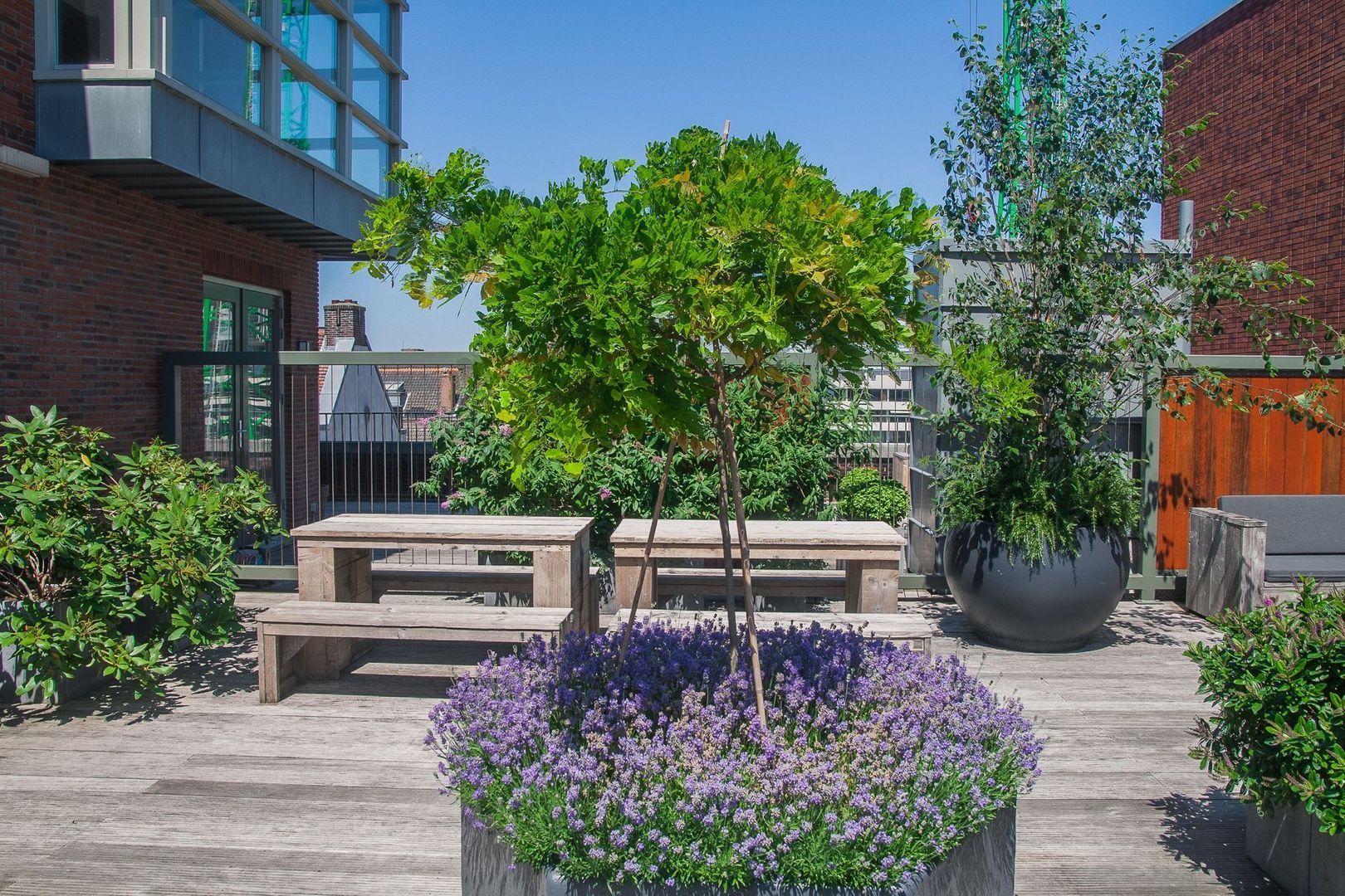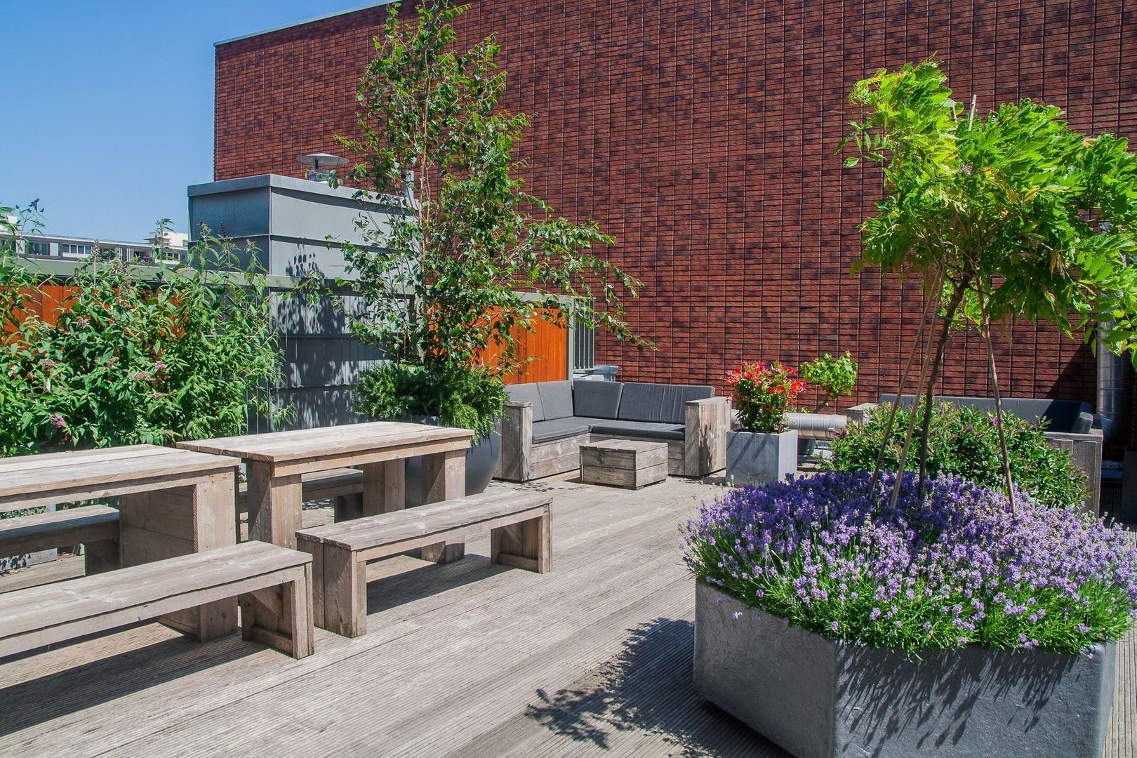 Op deze 1e en 4e verdieping bevinden zich, goed bereikbaar vanaf het appartement, 2 forse, zonnig en vrij gelegen gemeenschappelijke TERRASSEN.
