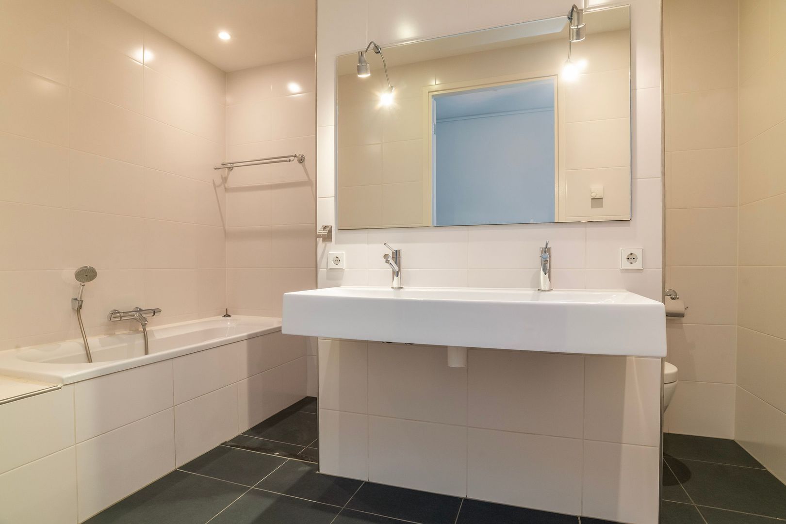 Grote badkamer ca. 8,5m² met ligbad, separate douche, 2e wc en dubbele wastafel.
