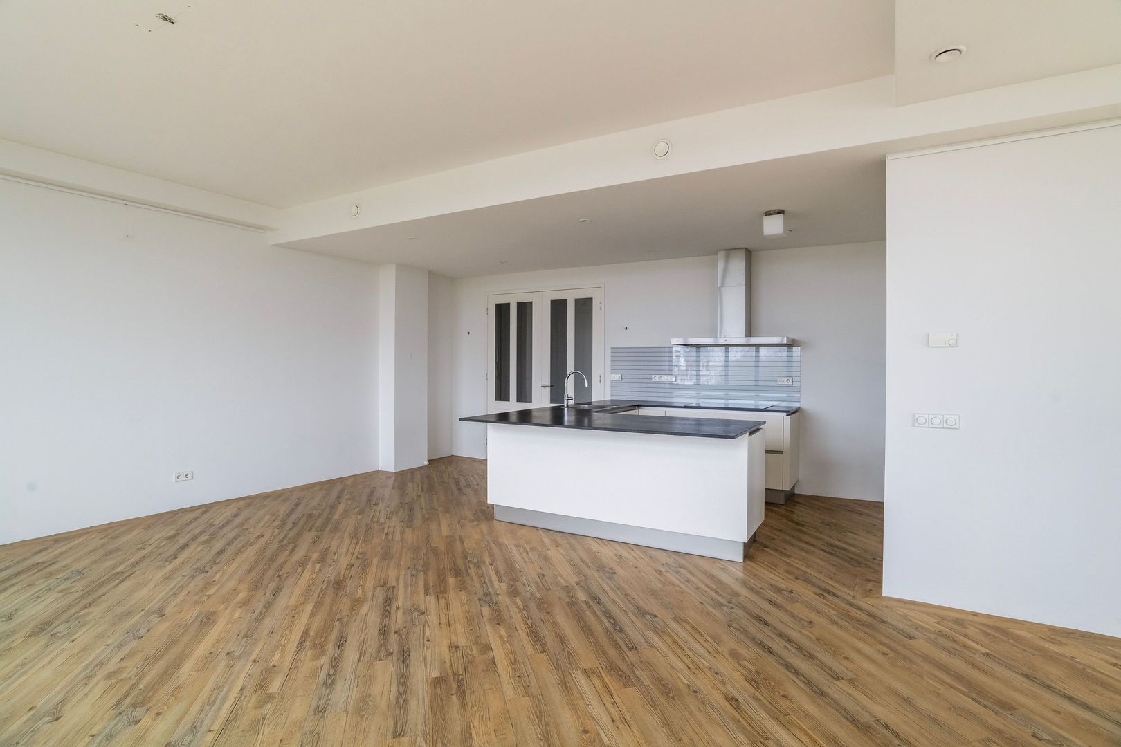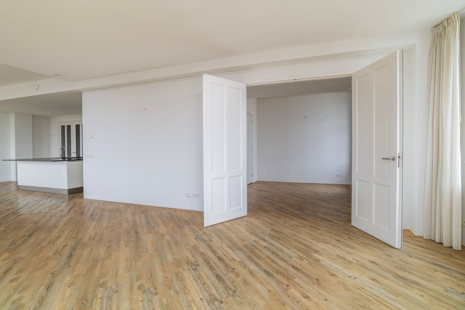 Vanuit de ruime hal, met toiletruimte met wc en fonteintje, is er via dubbele deuren toegang tot het woon/leefgedeelte van ca 60m2 met een zit- en dinergedeelte. Vanuit de machtige raampartijen is het zicht fenomenaal op de Veerhaven, de Maas en de groene Parklaan: voor de vroege vogel is het mogelijk om een aantal malen per maand cruiseschepen voorbij te zien varen.