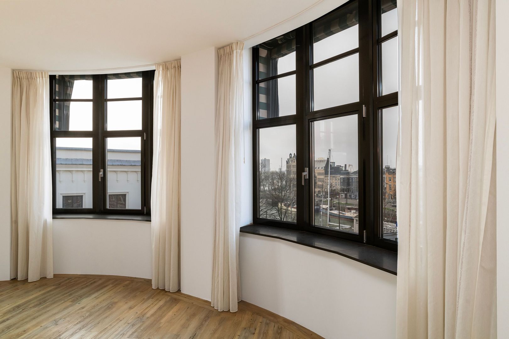 Geweldig gelegen 3-KAMER-HOEKAPPARTEMENT (ca. 148m²) op de 4e verdieping van het monumentale Atlantic Huis, met schitterend zicht op de talloze boten op de Maas en in de Veerhaven, de Parklaan en de fraaie monumentale panden aan het Westplein en de Van Vollenhovenstraat.