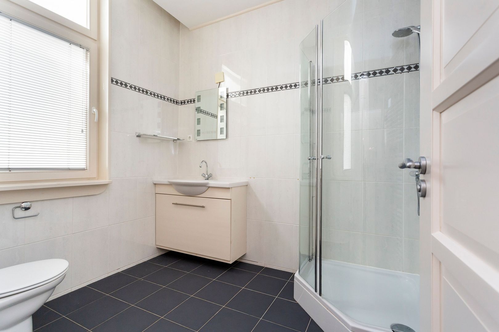 Badkamer voorzien van een douchecabine, wastafelmeubel, designradiator en 2e toilet.
